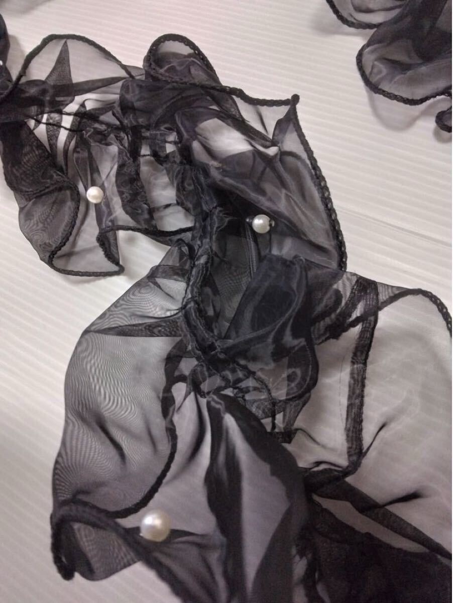帯から見えるフリルとパールが可愛らしい帯揚げです!