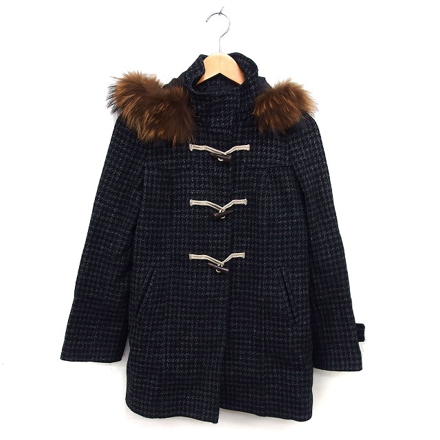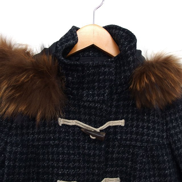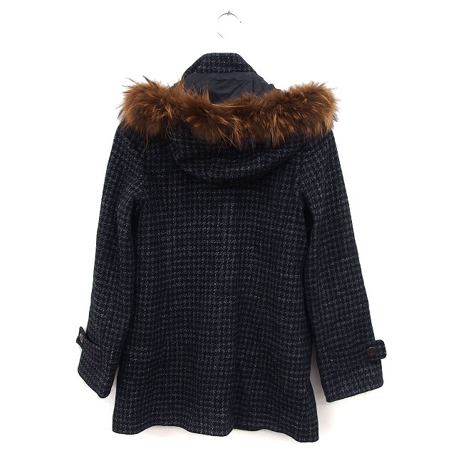 クミキョク 組曲 KUMIKYOKU ダッフルコート アウター ミディ丈 ラクーンファー ウール混 千鳥柄 2 黒 ブラック /NT10 レディース
