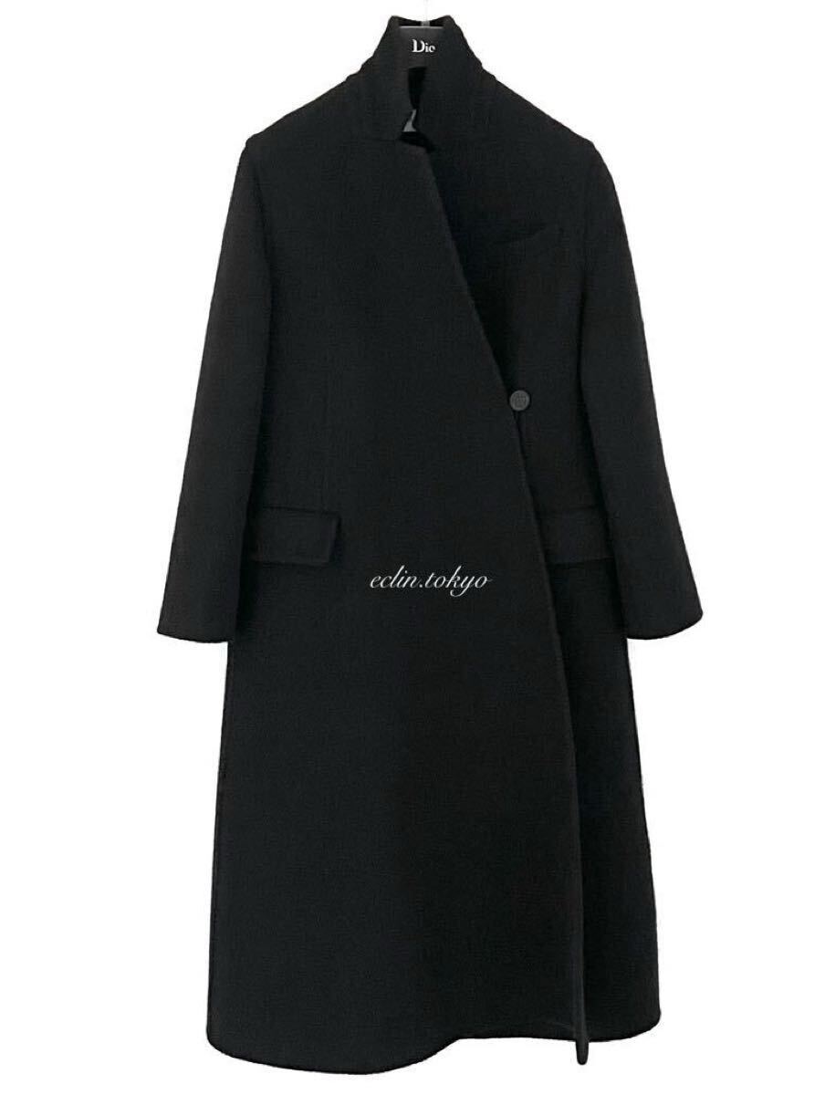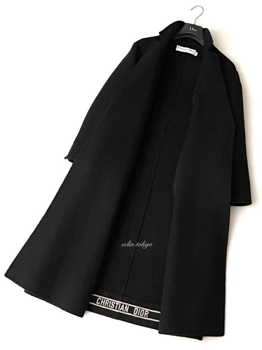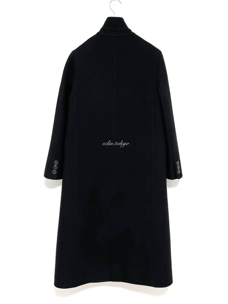 裾ロゴ入り 超美シルエット ロングコート 黒 34