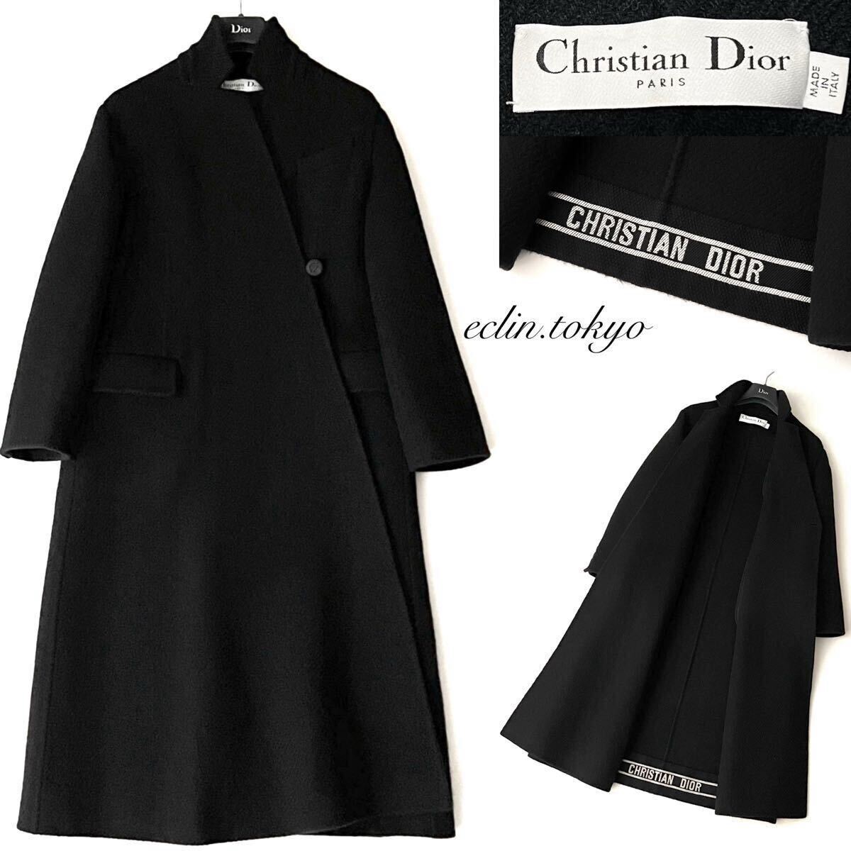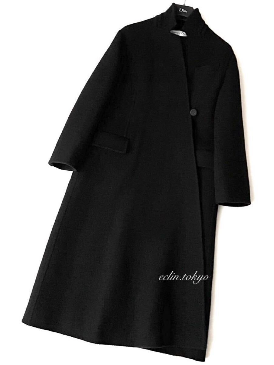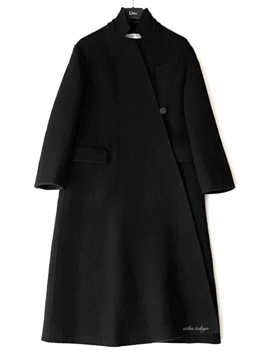 裾ロゴ入り 超美シルエット ロングコート 黒 34