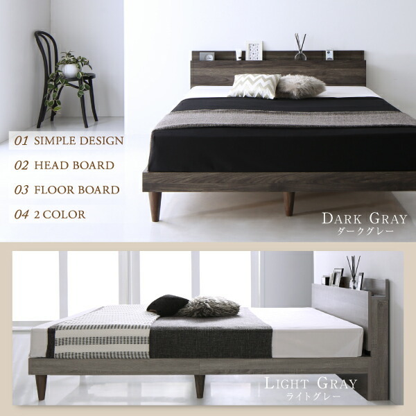 棚・コンセント付きデザインすのこベッド Grayster グレイスター スタンダードポケットコイルマットレス付き シングル【フレームカラー:ライトグレー】【寝具カラー:ホワイト】です。
