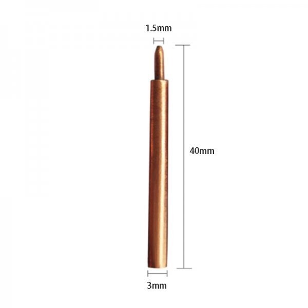 商品説明 | +++ ご覧いただきありがとうございます。 +++ スポット溶接機のペンに取り付ける交換用の針になります。 品名:アルミナ銅溶接機溶接針 定格デューティサイクル:100% 溶接厚さ:3.0mm(最大) 寸法:40mm(全長) 1.5mm(先端部) 3mm(固定部) 使用法:ニッケルスポット溶接バッテリースポット溶接 融点:90゜ 材質:アルミナ銅 標準径:3mm コア径:1.5mm 形状等はは写真で判断してください。 |