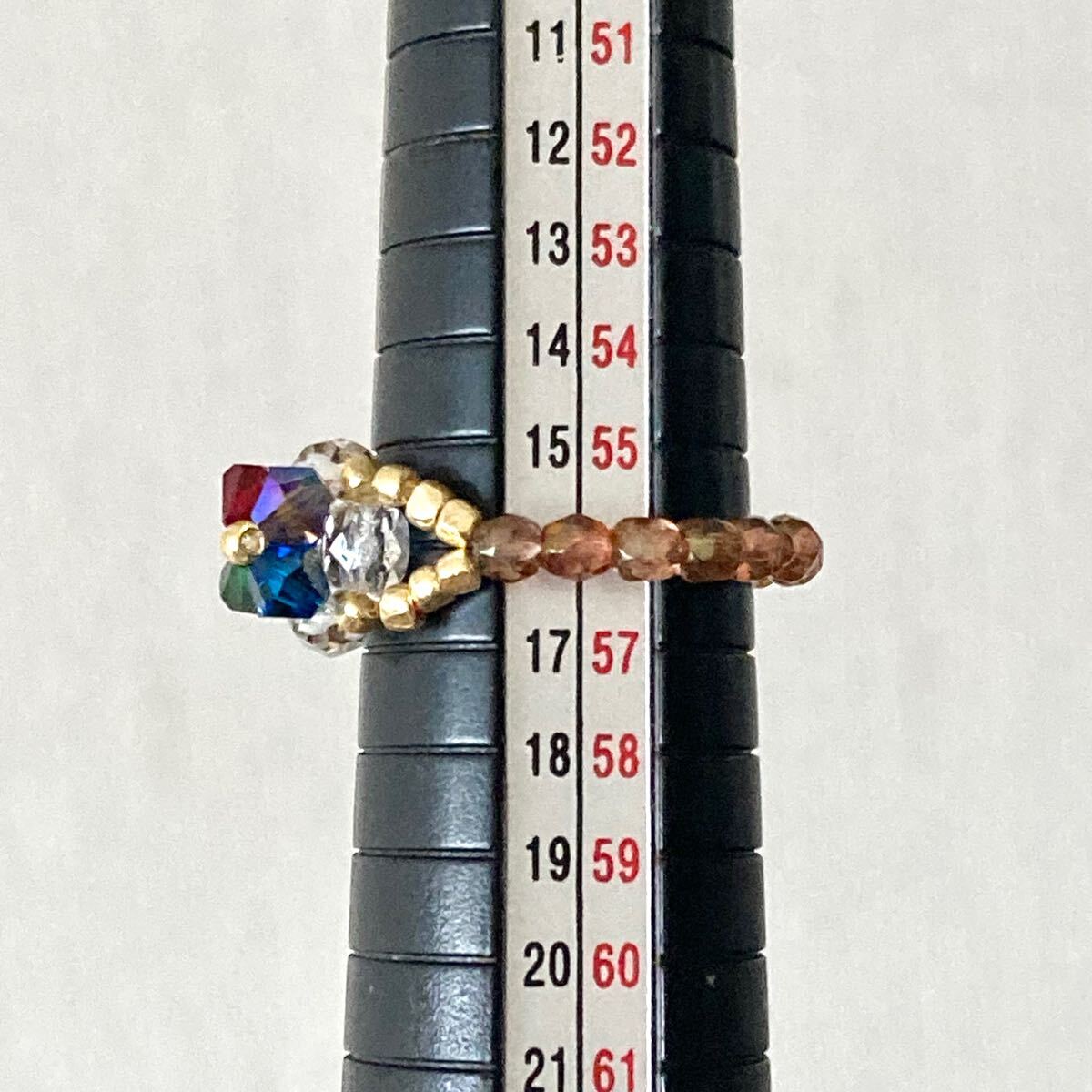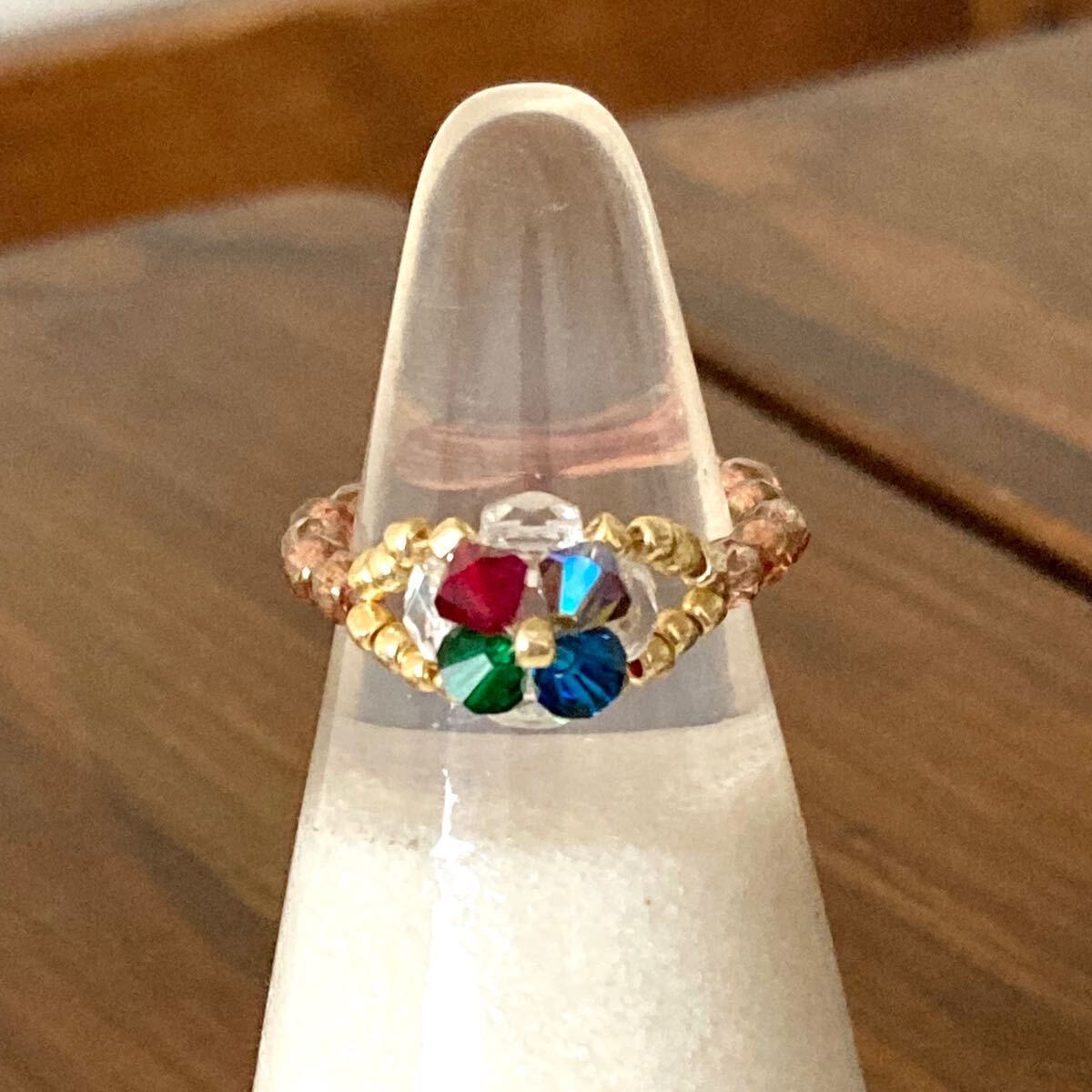 15-17号 ビーズ リング  スワロフスキーのお花ひとつリング カラフル①