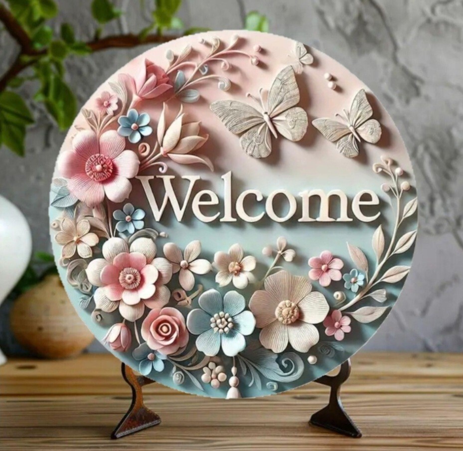 アルミニウムのメタルボードに3Dのプリント技術で描かれた花のメタルアートです。