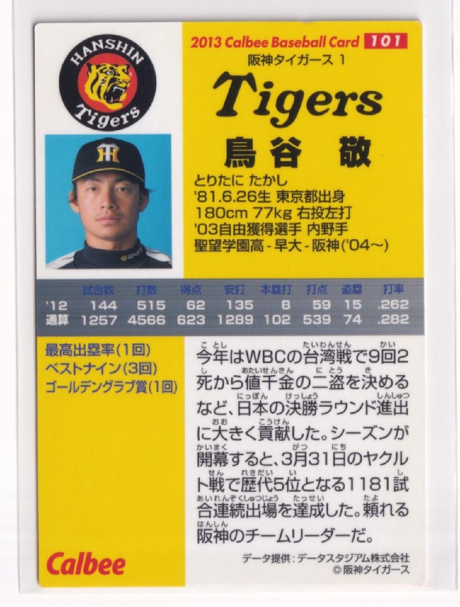 2013プロ野球チップス第2弾 101 鳥谷 敬(阪神)