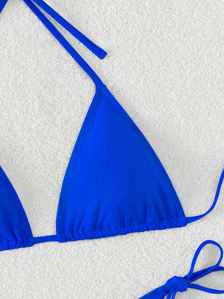 レディース 水着 ビキニセット サマービーチホルター三角形ビキニパック、タイサイド