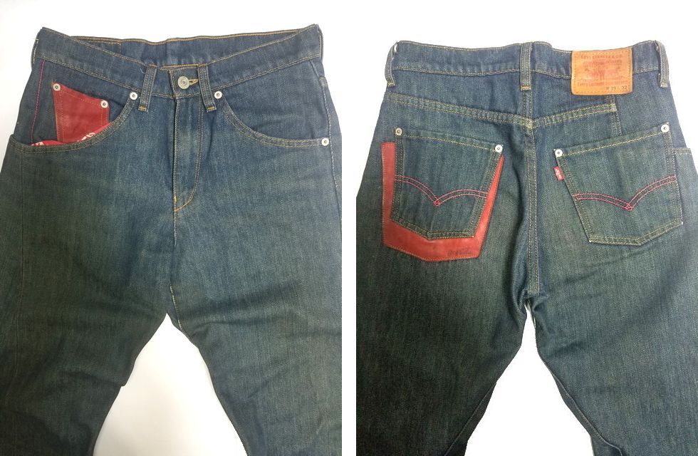 ■LEVI'Sジーンズはポケット2ヶ所にコカ・コーラのロゴ入りレザーパッチが入るほか、ステッチをすべてコカ・コーラレッドで統一するなどこだわりが光る。