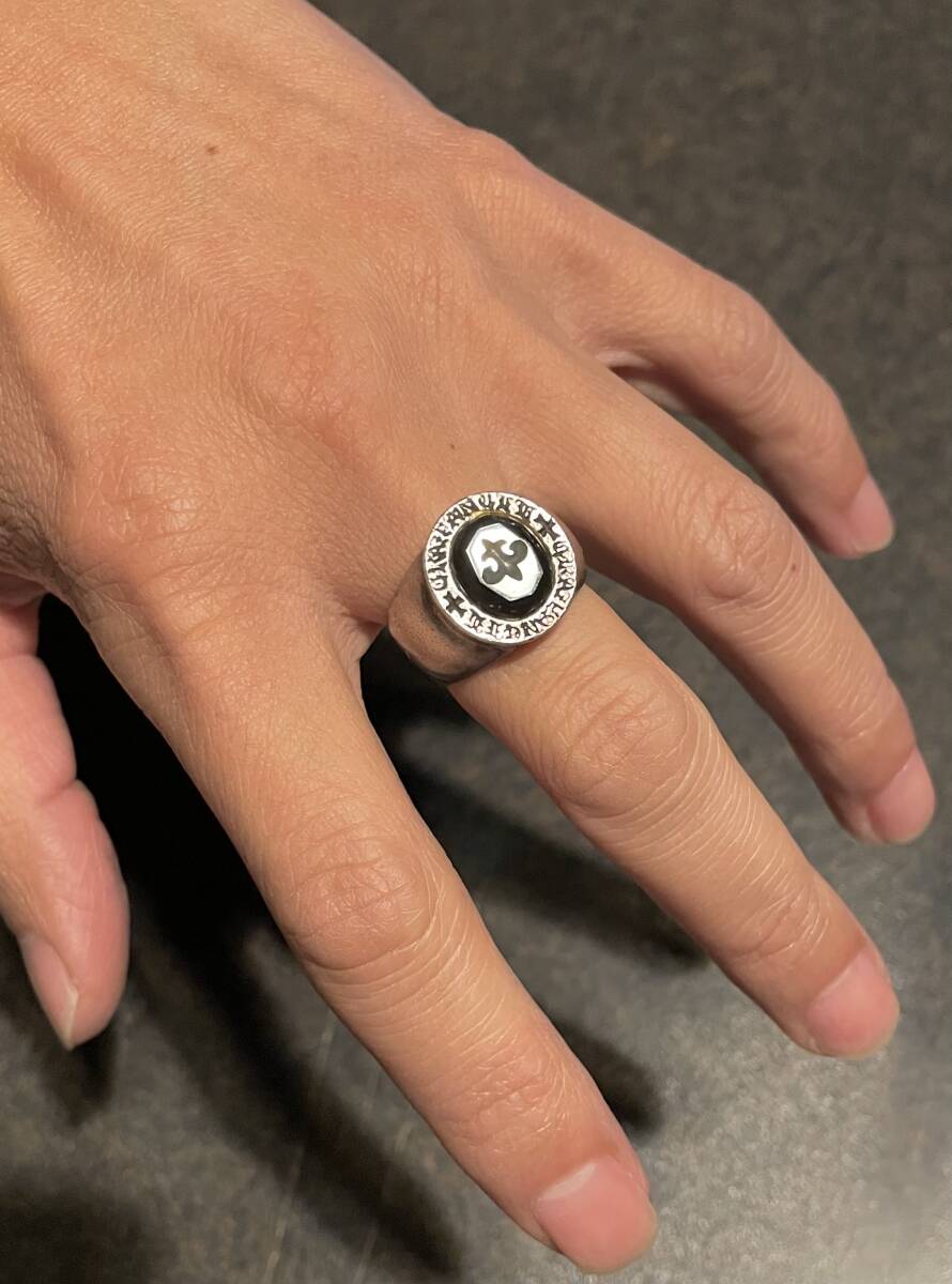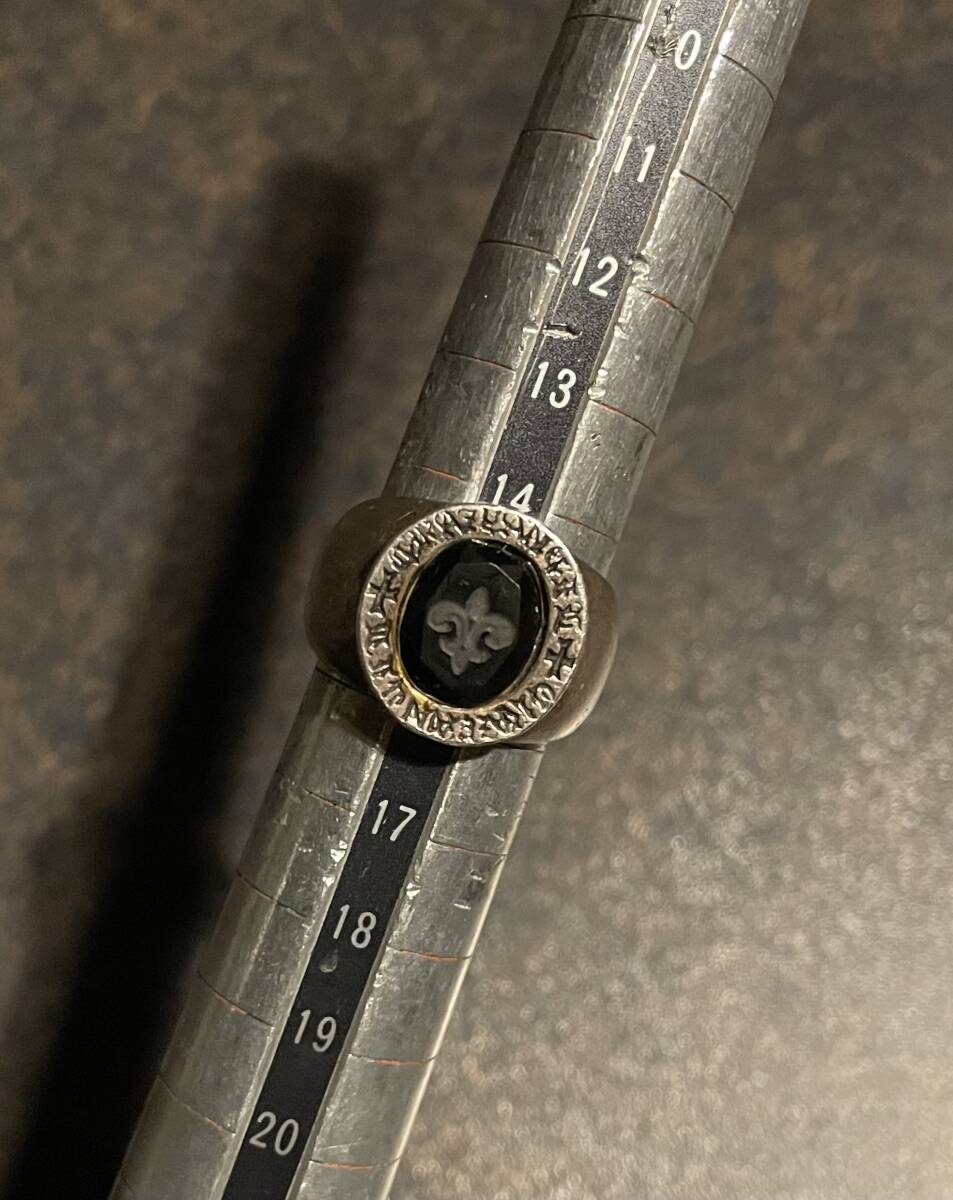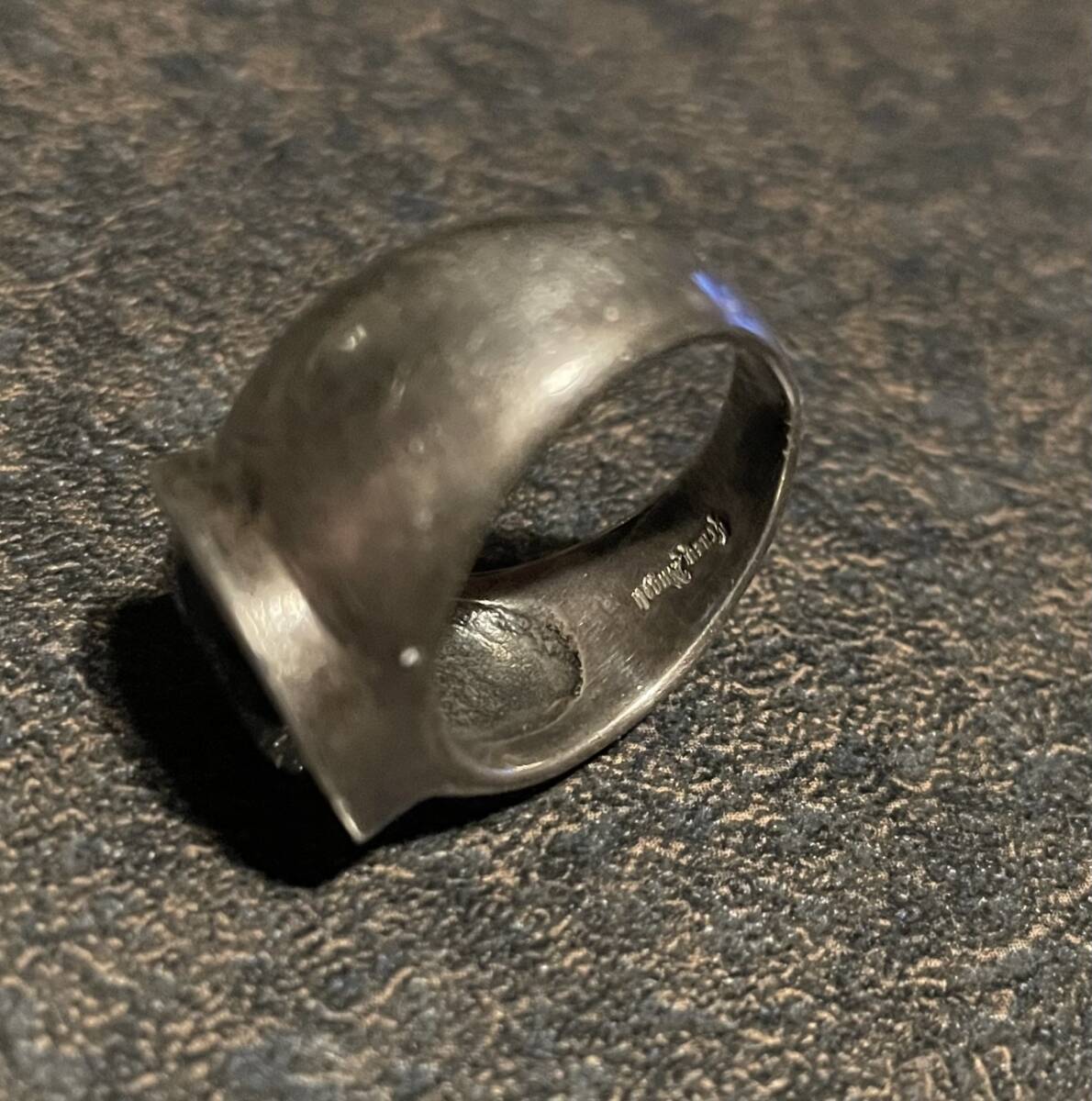 百合の紋章オニキス00sオールドSILVER925シルバー銀製リング#15号ゴシック調デザイン2000s00年代y2kビンテージ印台シグネチャー シグネット