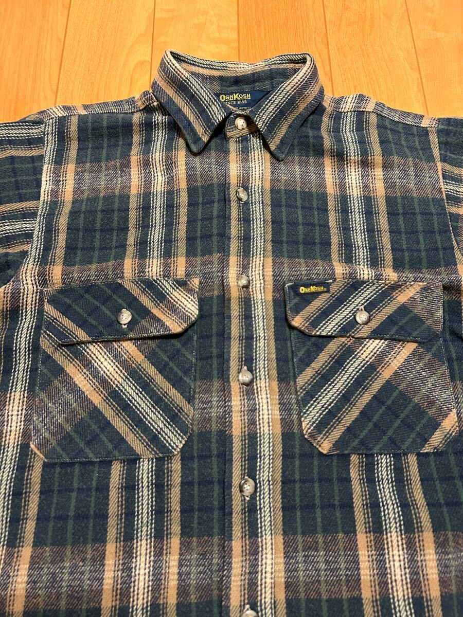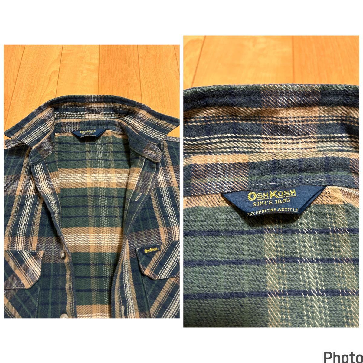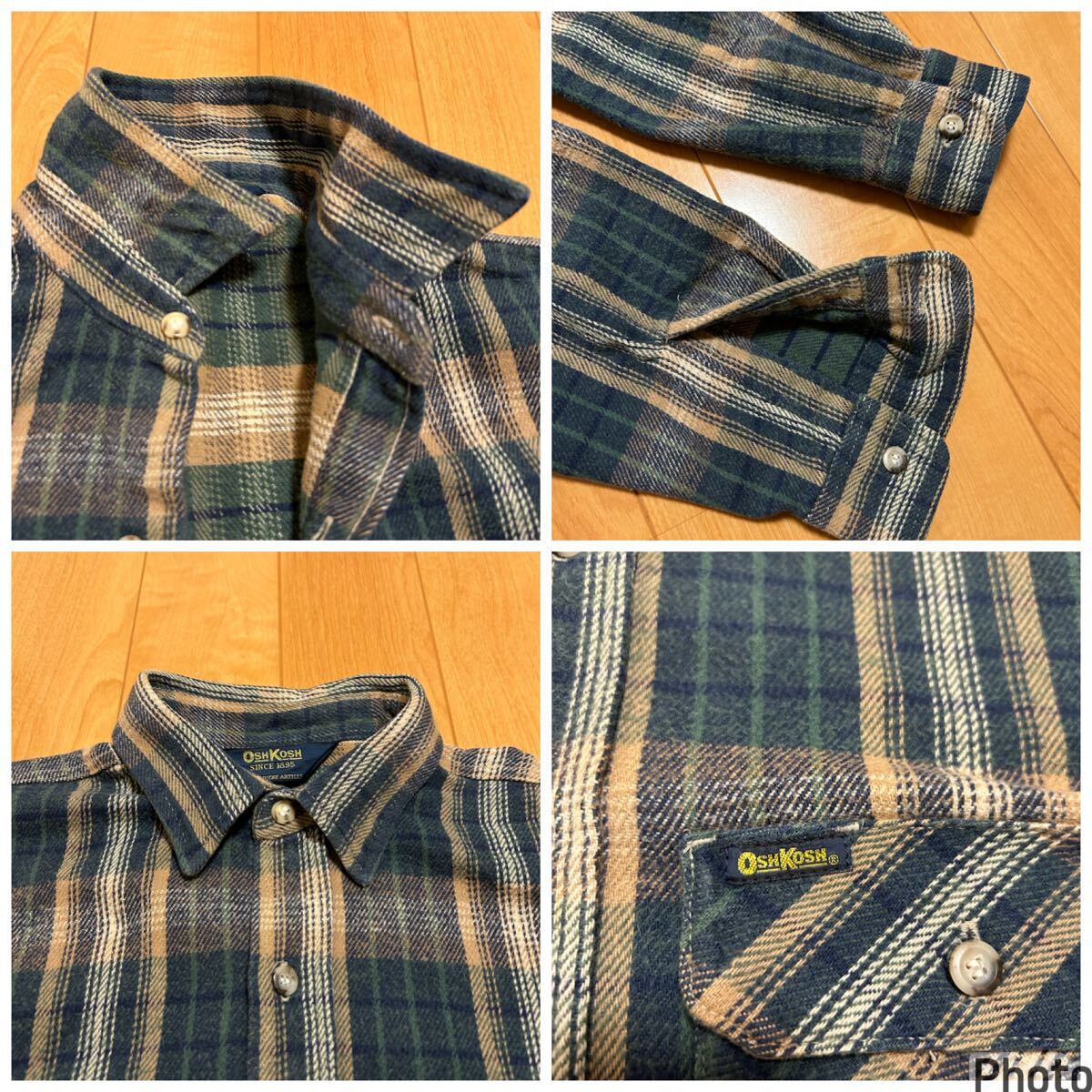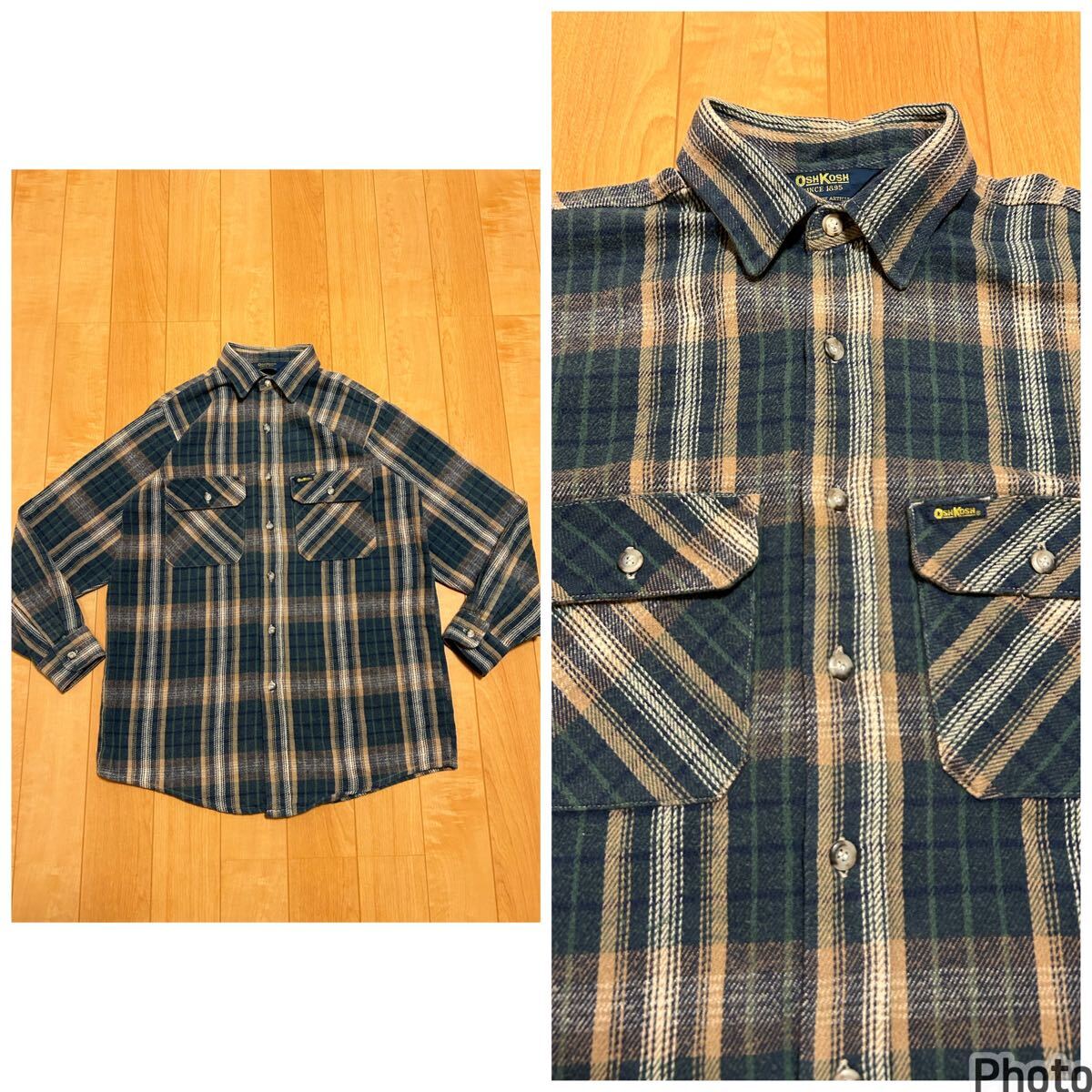 良品☆90s OSHKOSH/オシュコシュ 日本サイズXL〜並 長袖 ヘヴィネルシャツ.チェック柄 オリジナルビンテージ 襟芯入&ロゴタブ付 USA古着