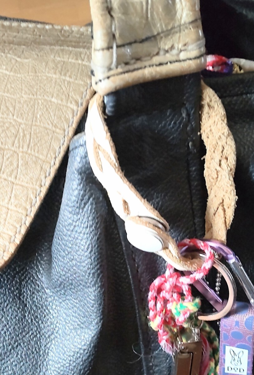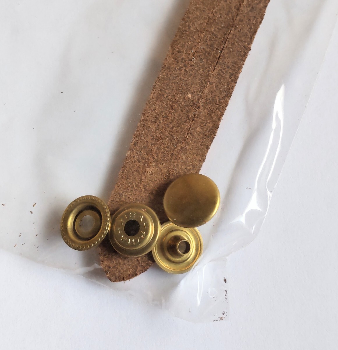 2番目の写真のように、編み上げて、ハトメで仕上げます。