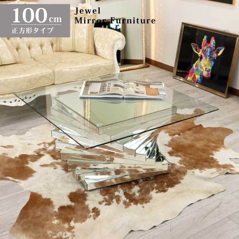ミラー家具 リビングテーブル ローテーブル 100cm ガラステーブル おしゃれ コンテンポラリー モダン エレガンス インテリア