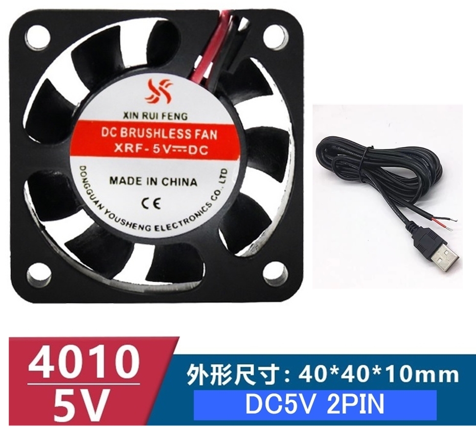 小型クーリングファン V5V 40×40×10mm USBケーブル付き 401005 2ピン(冷却 DC ファン クーラー 空冷 USB 送風 排気 換気 ファン、