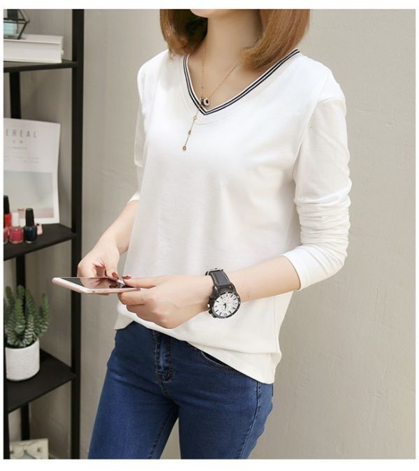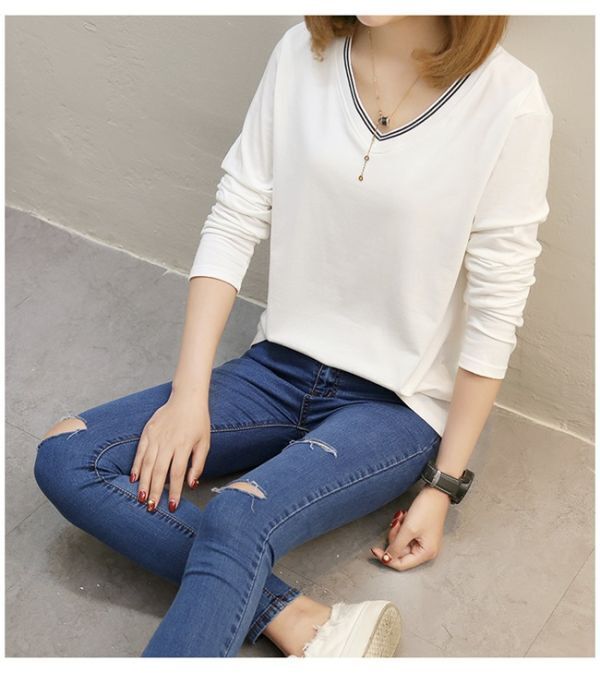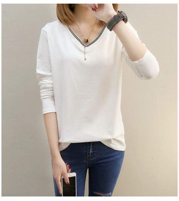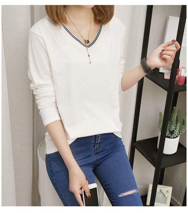 トップス レディース vネック Tシャツ シンプル プルオーバー 長袖 秋 冬 春 無地 to2-197w