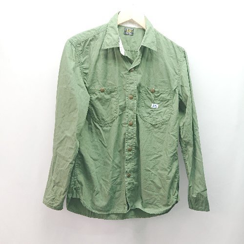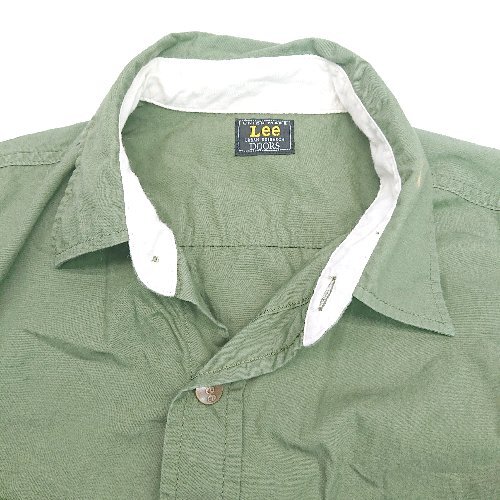 ◇ ◎ Lee フロントボタン 胸ポケット ロゴワンポイント カジュアル 長袖 シャツジャケット サイズM グリーン メンズ E
