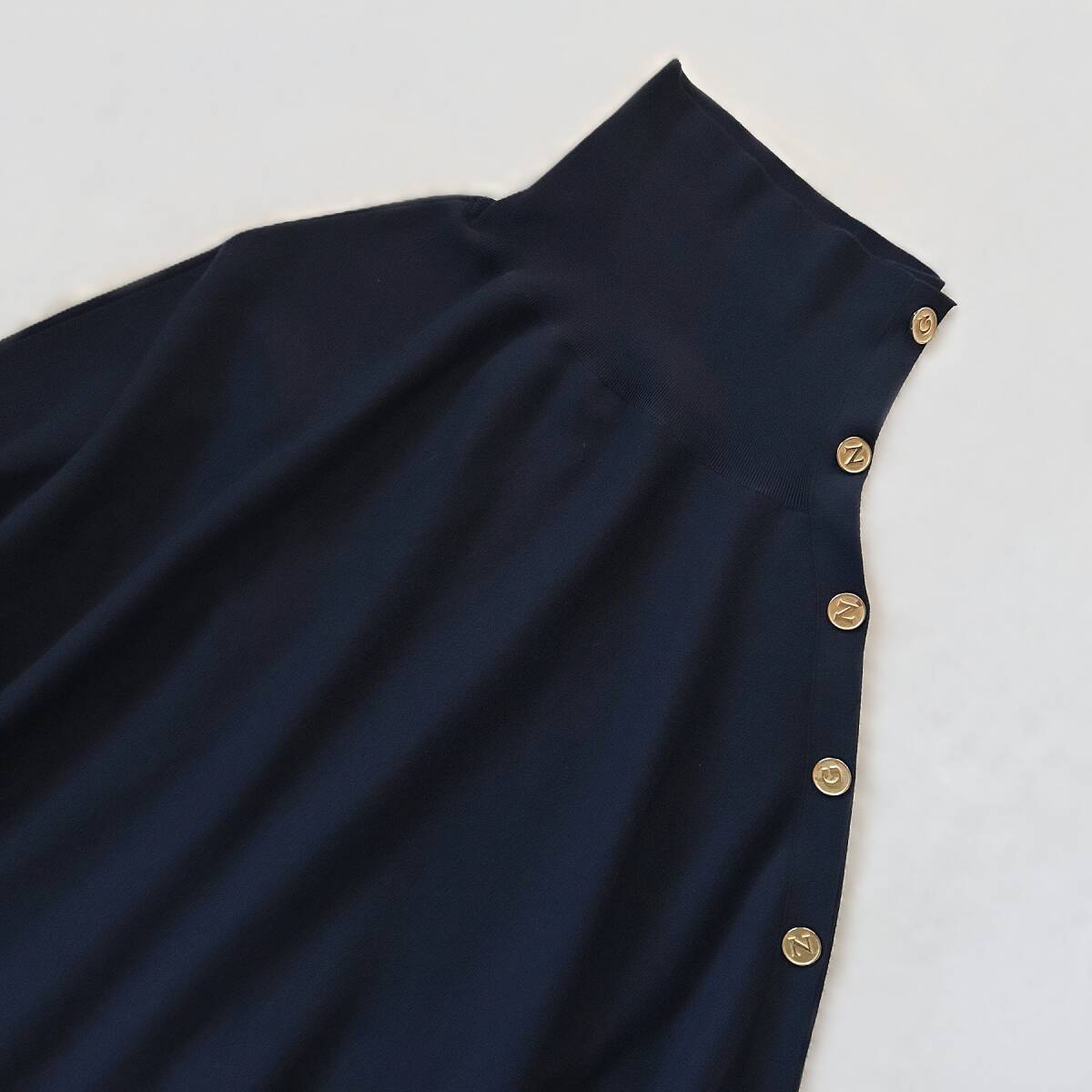 高品質な素材を提供し続けているイタリアのCARIAGGIよりエクストラファインメリノというカシミヤ同等の高級素材を使用することで、しっとりとした質感が生まれ、流れるようなシルエットを作り出します。