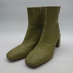 ■ SLY サイドジップ スクエアトゥ シンプル ショート丈 ブーツ サイズL グリーン系 レディース E