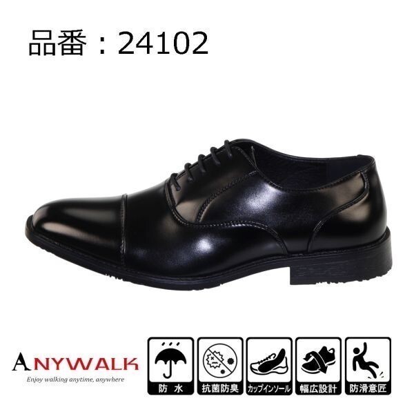 メンズ ビジネスシューズ 25.5cm ストレートチップ レースアップ カジュアル 4cm4時間 防水 撥水 抗菌 制菌 防臭 消臭 幅広 aw_24102