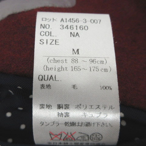エトネ ETONNE ジャケット Flanne.Jana 日本製生地 テーラードカラー シングル 2B 起毛 ウール レッド系 赤系 M メンズ