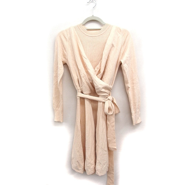 スナイデル SNIDEL ニット フレア ワンピース カシュクール 長袖 ひざ丈 無地 アンゴラ混 F ライトベージュ /FT41 レディース