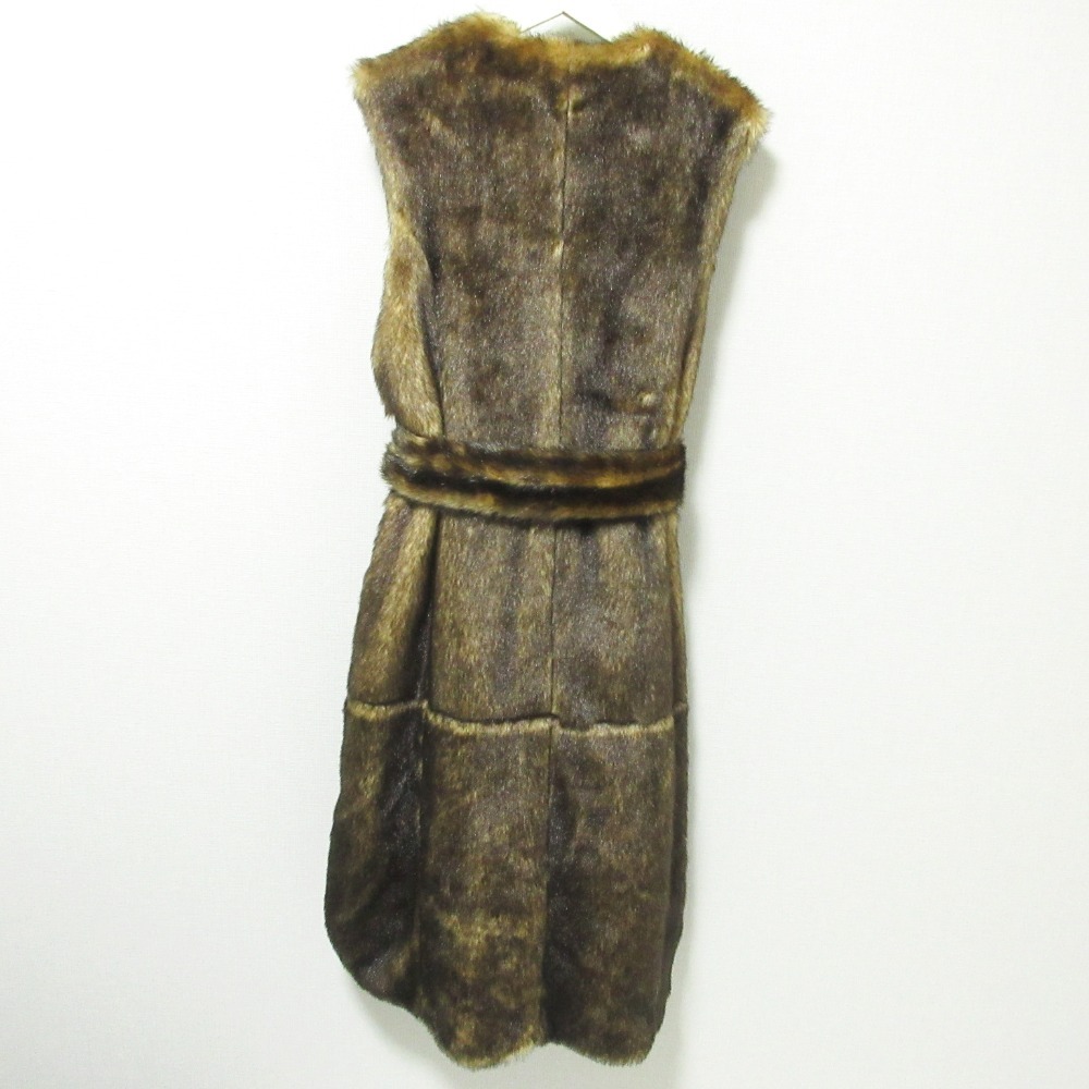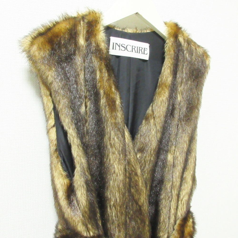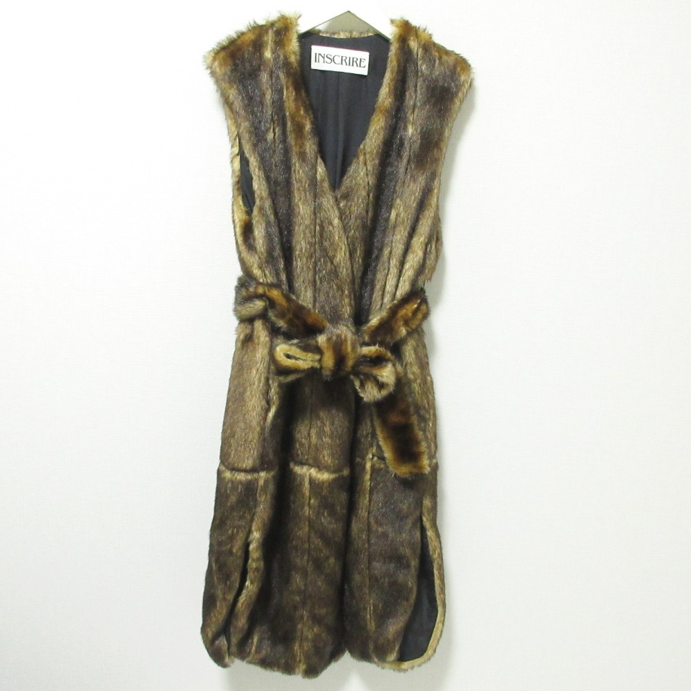 商品名:新品 未使用 INSCRIRE アンスクリア エコファー ノースリーブベルテッドコート ロングジレ 38 ブラウン