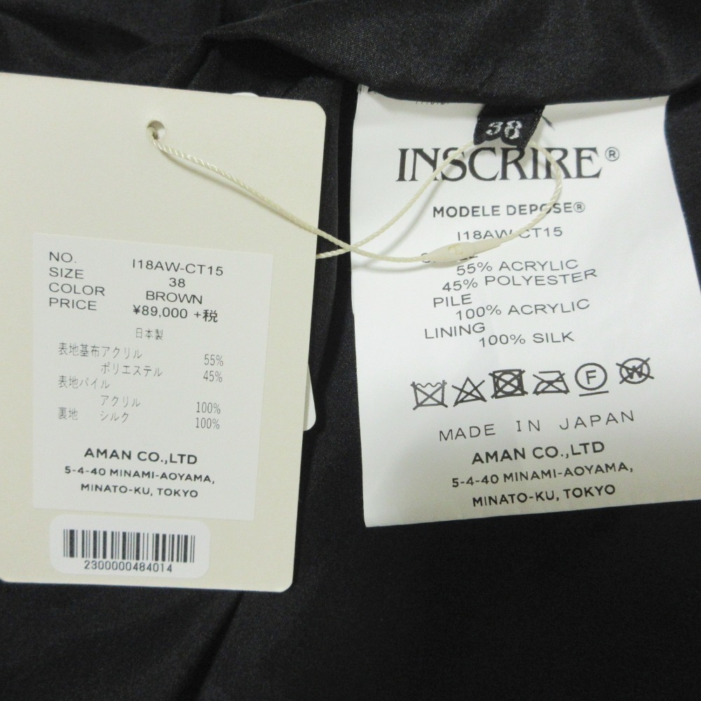 未使用 INSCRIRE アンスクリア エコファー ノースリーブベルテッドコート ロングジレ 38 ブラウン