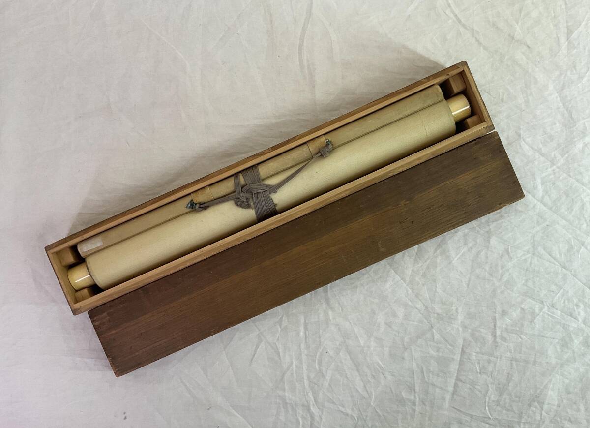 古い掛け軸は軸先を固定している接着剤が弱り、輸送途中の衝撃で軸先が外れてしまう場合がございます。