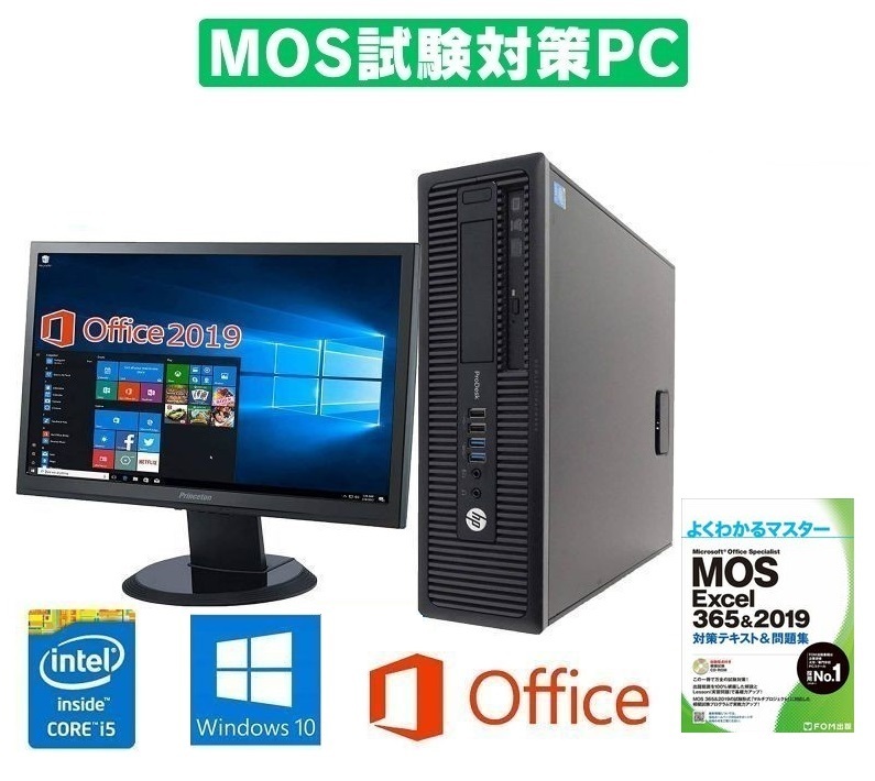 【MOS試験対策PC】 超大画面22インチ液晶セット HP 600G1 大容量メモリー:4GB SSD:256GB Office 2019搭載 & MOS試験参考書付き