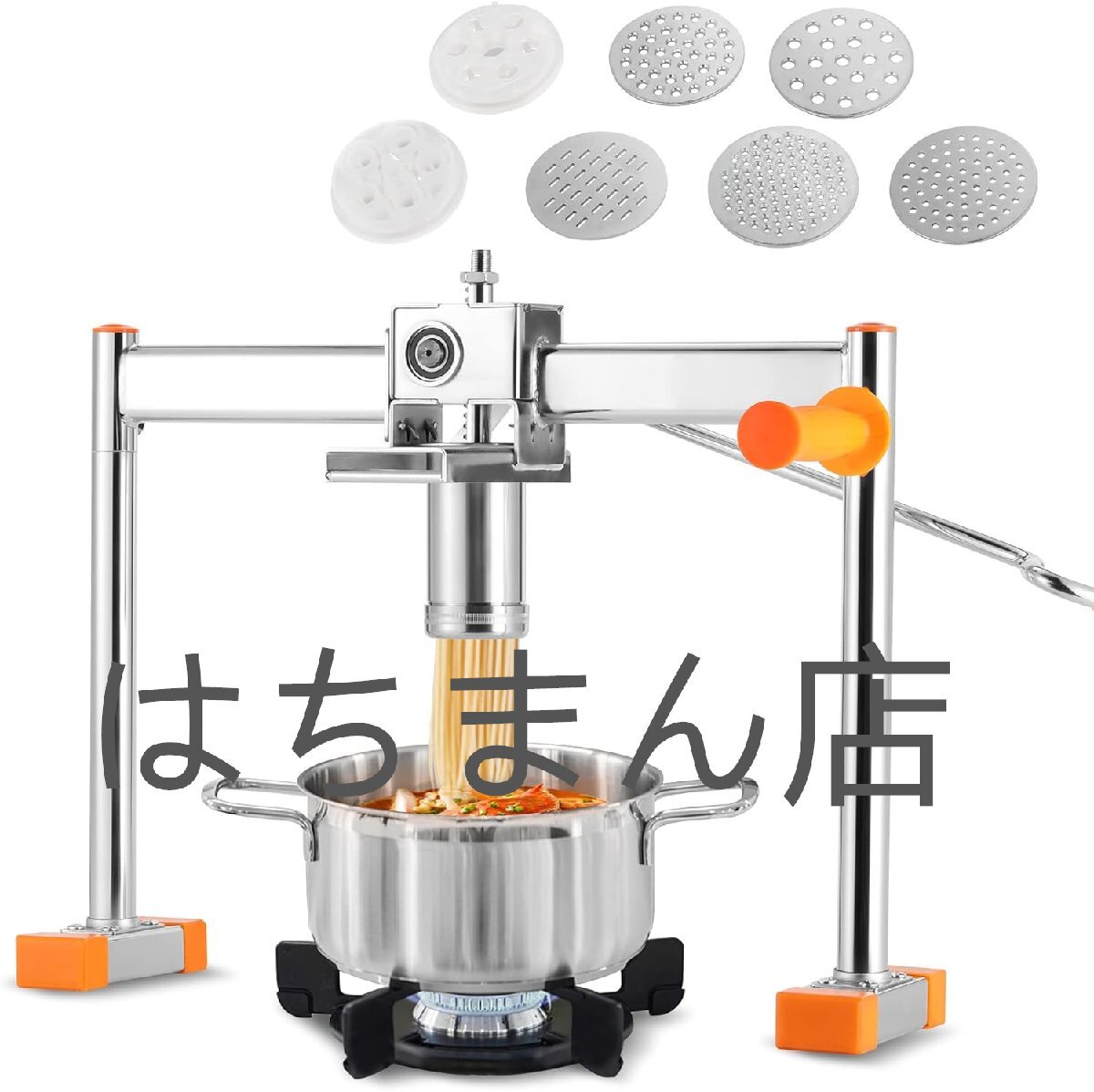 手動パスタメーカー 製麺機 水洗える 7種類の麺先付き ステンレス製麺筒 家庭用 業務用 そば/うどん/生パスタ/中華麺など