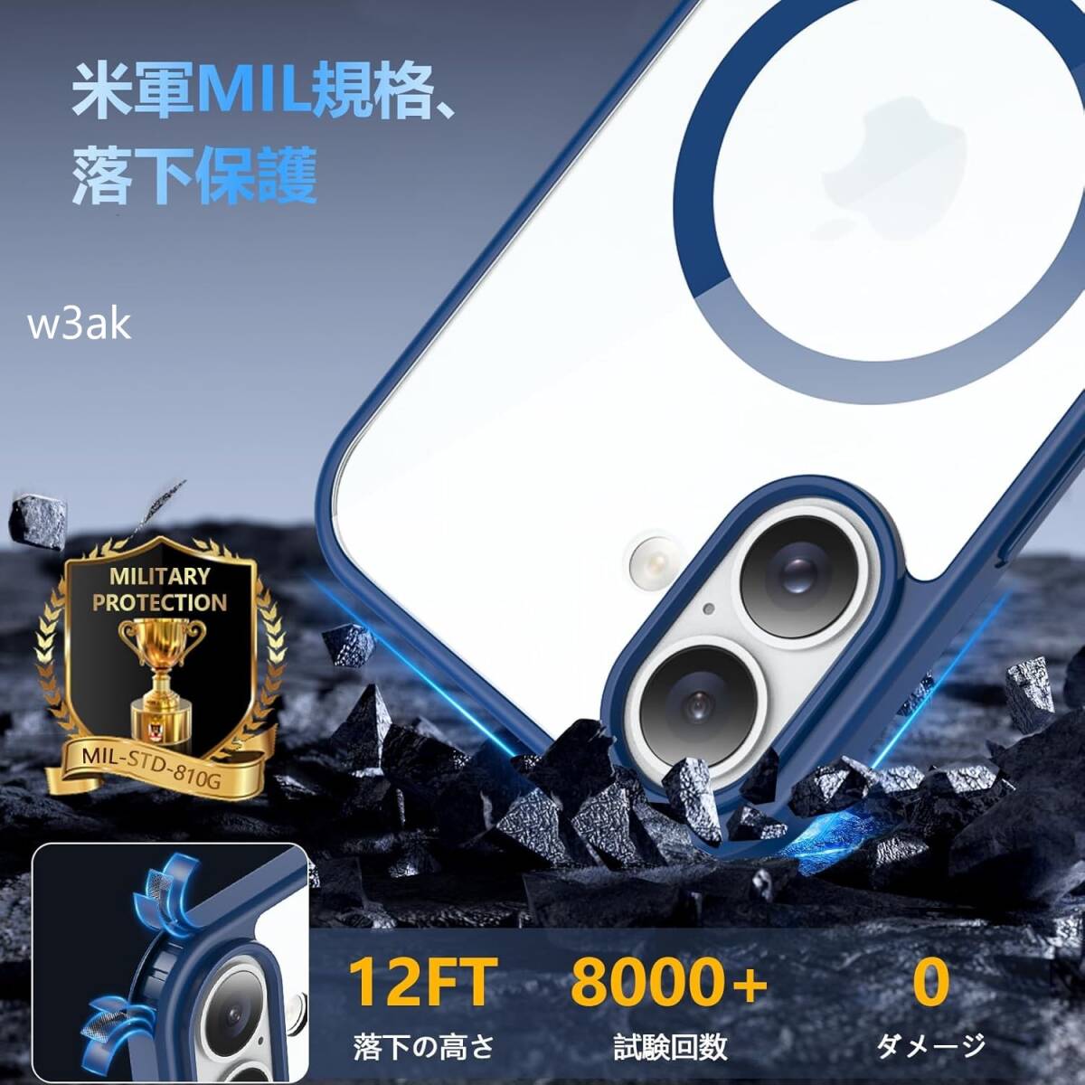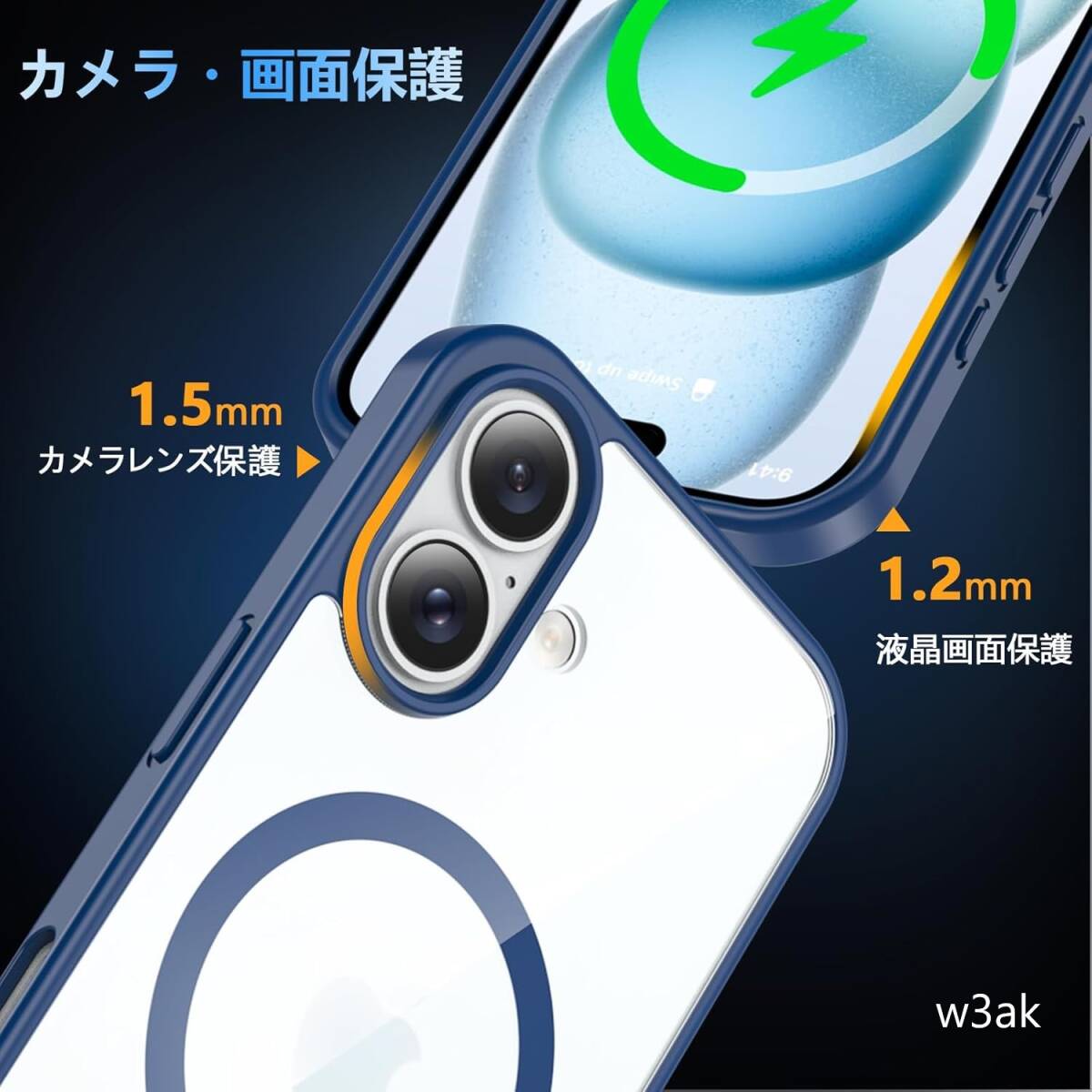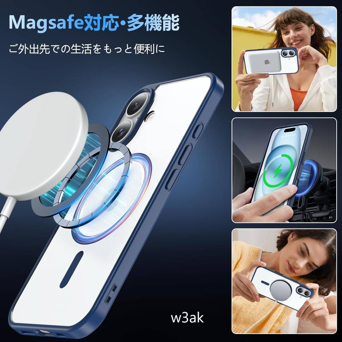 スマホケース iPhone 16 ケース ガラスフィルム付き MagSafe対応 アイフォン16 クリアケース 黄変防止 耐衝撃 マグネット搭載 ((ブルー))