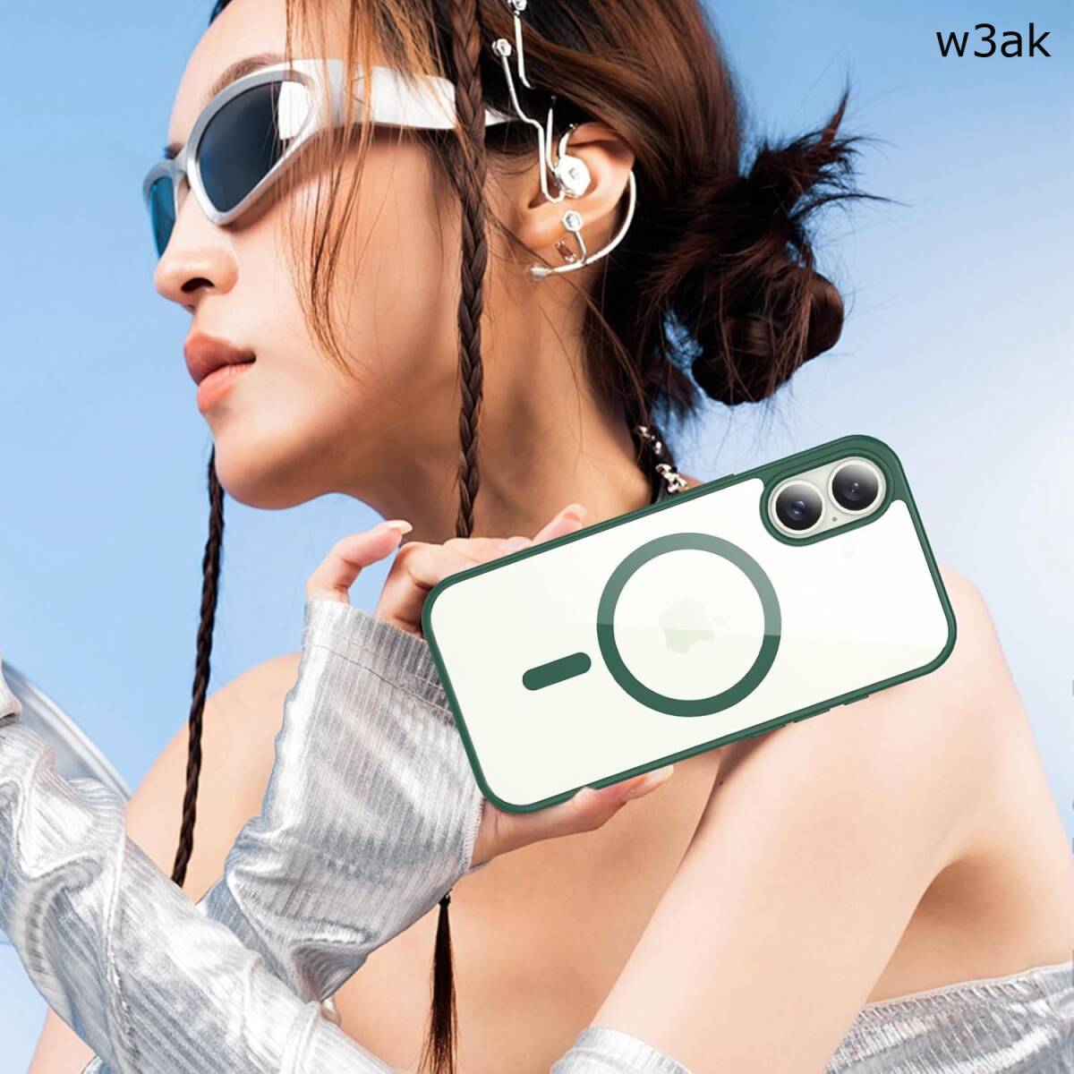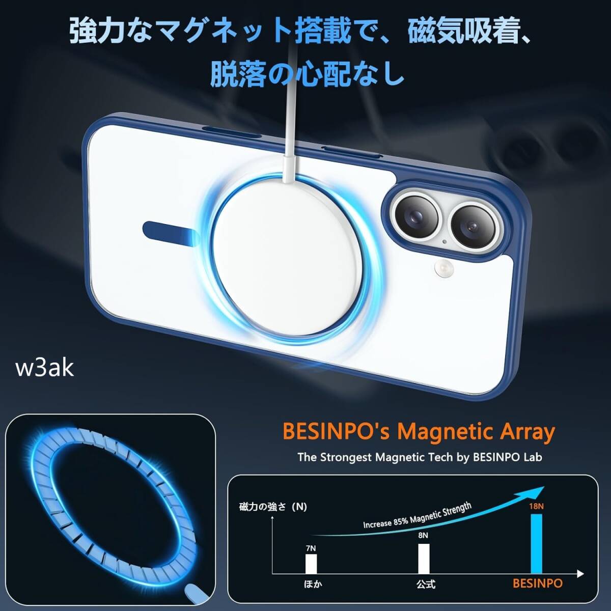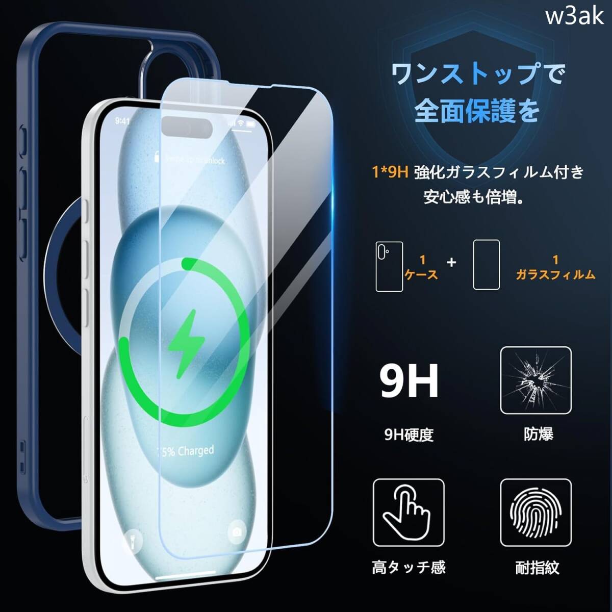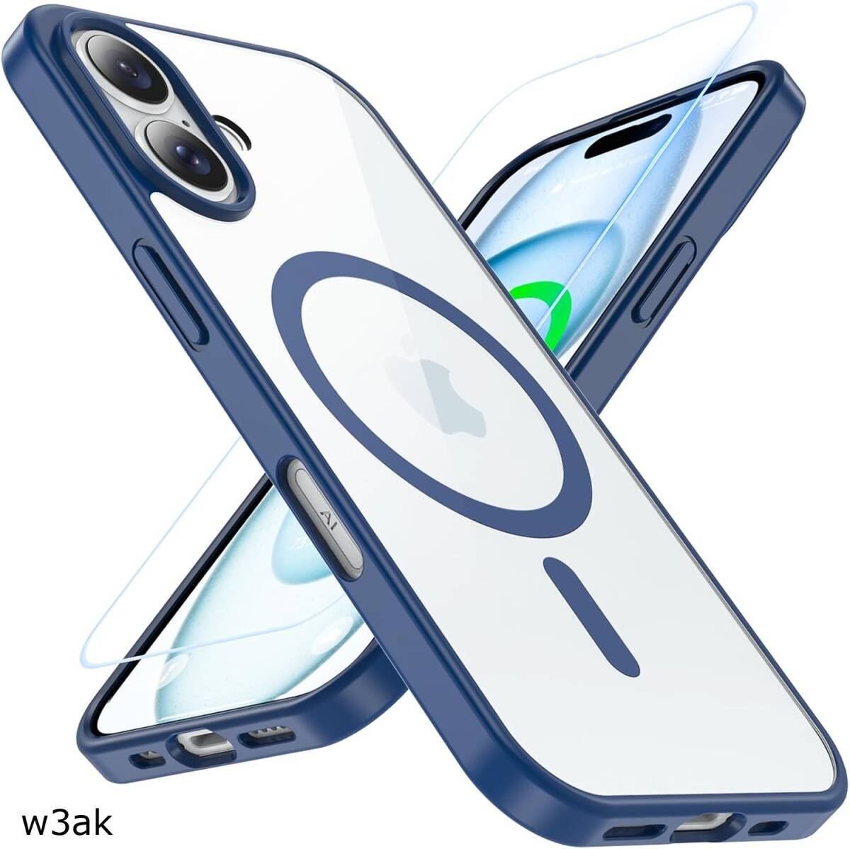 スマホケース iPhone 16 ケース ガラスフィルム付き MagSafe対応 アイフォン16 クリアケース 黄変防止 耐衝撃 マグネット搭載 ((ブルー))