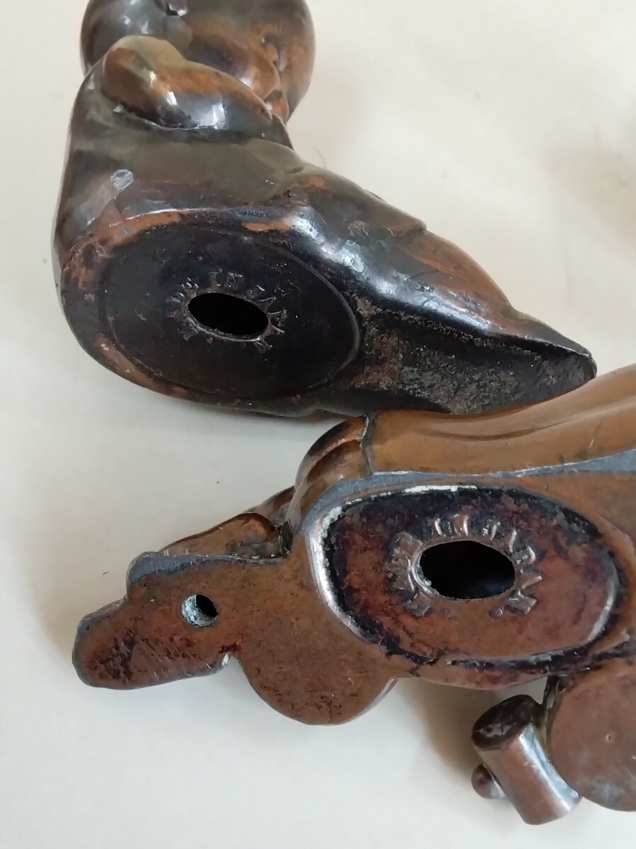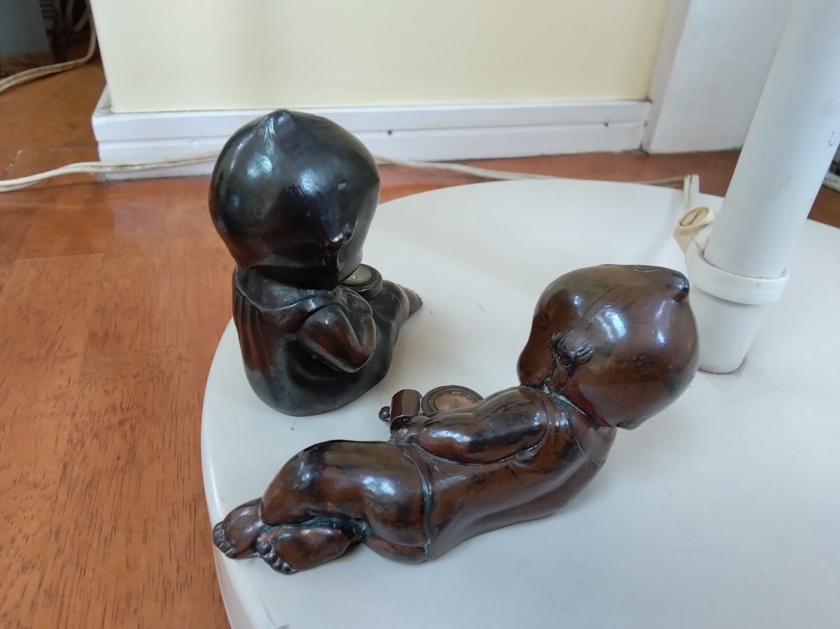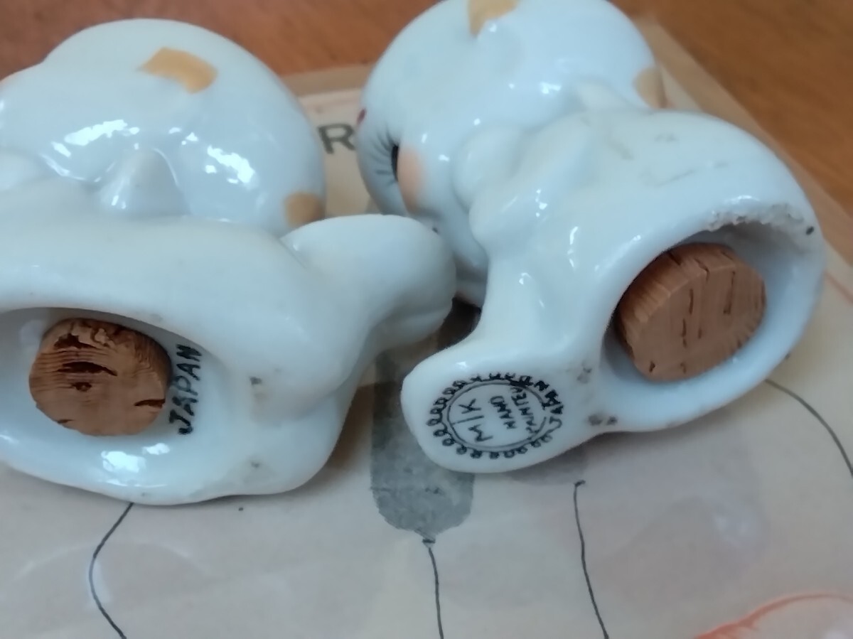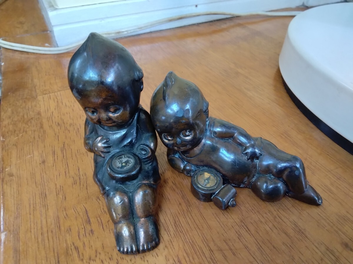ビンテージ 戦前~戦後 made in Japan 小さなキューピー人形 6個+ラベルまとめて QP 昭和レトロ セルロイド ビスクドール S&P メタル コンパス 塩コショウ入れ アンティーク オブジェです。戦前~戦後にかけてのキューピー人形とラベルです。。ラベルが一番古く大正期頃、次にメタルキューピー、ビスク、セルロイドの順です。メタルキューピーのペアは方位磁石両方ともちゃんと回っています。セルは少しへこみあり、ビスクペアは塩コショウ入れでハンドペイントです。メタルセル共Japanの刻印あります。全体に状態良い方ですが時代なりの古味ついています。画像ご確認下さい。長期自宅保管の古いものである事をご理解頂ける方に。サイズ(セルロイド)7センチ。ご質問には誠意を持ってお答え致しますのでノークレームでどうぞよろしくお願い致します。他にも出品しておりますのでよろしければ御覧下さいね。