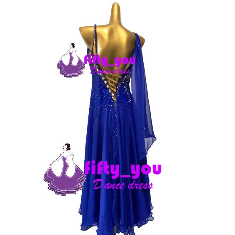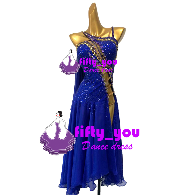 新品fifty_you レディース社交ダンス衣装  サイズセミオーダー ラテンドレス ハイクオリティドレス ロング ルンバ ローヤルブルー