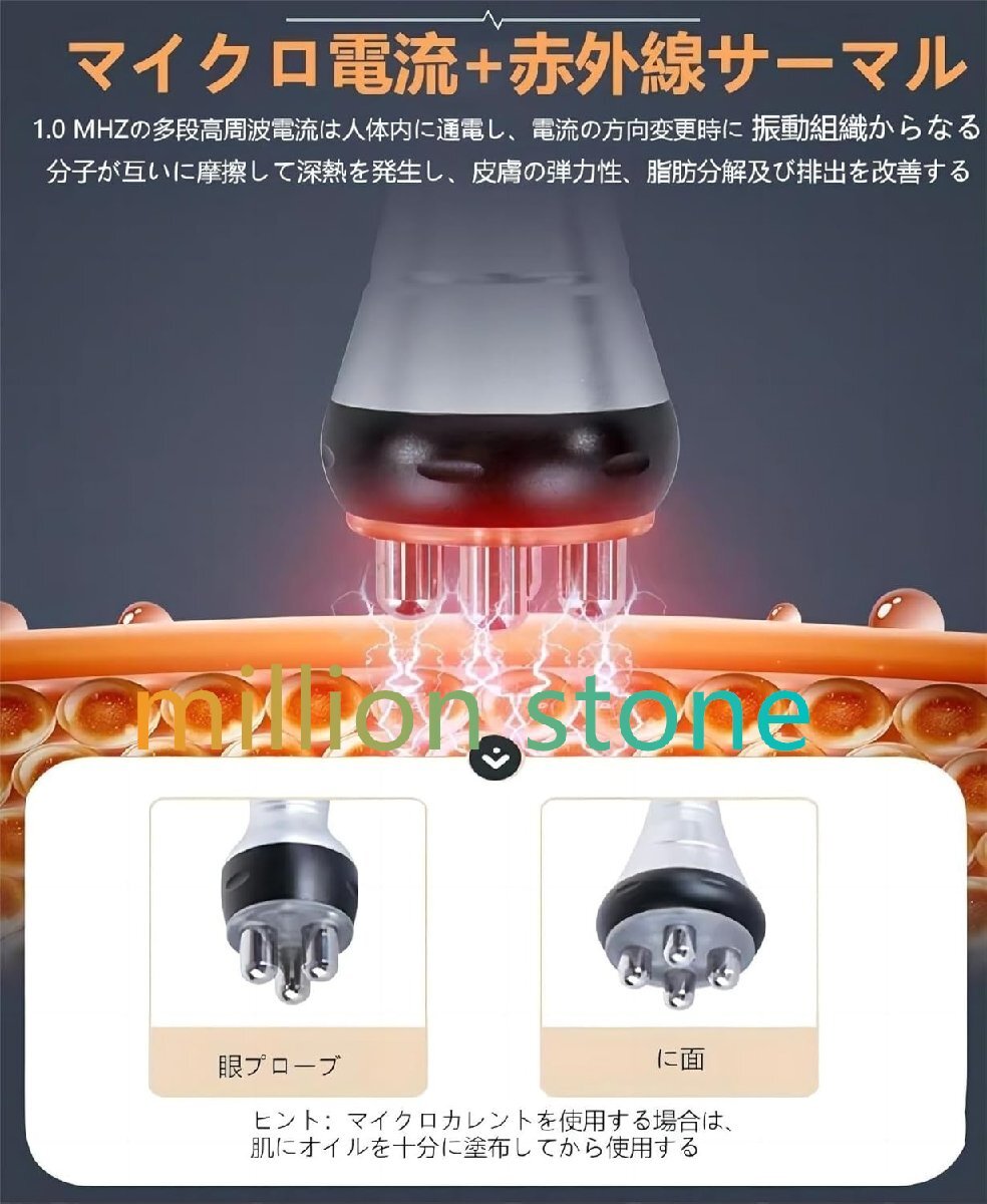 【ラジオ波】1MHz/3MHz。キャビテーションで溶けだした脂肪を燃焼させます。しっかり熱を感じる業務用レベルです。