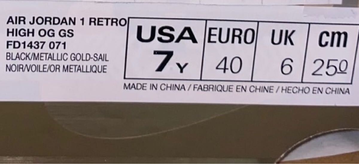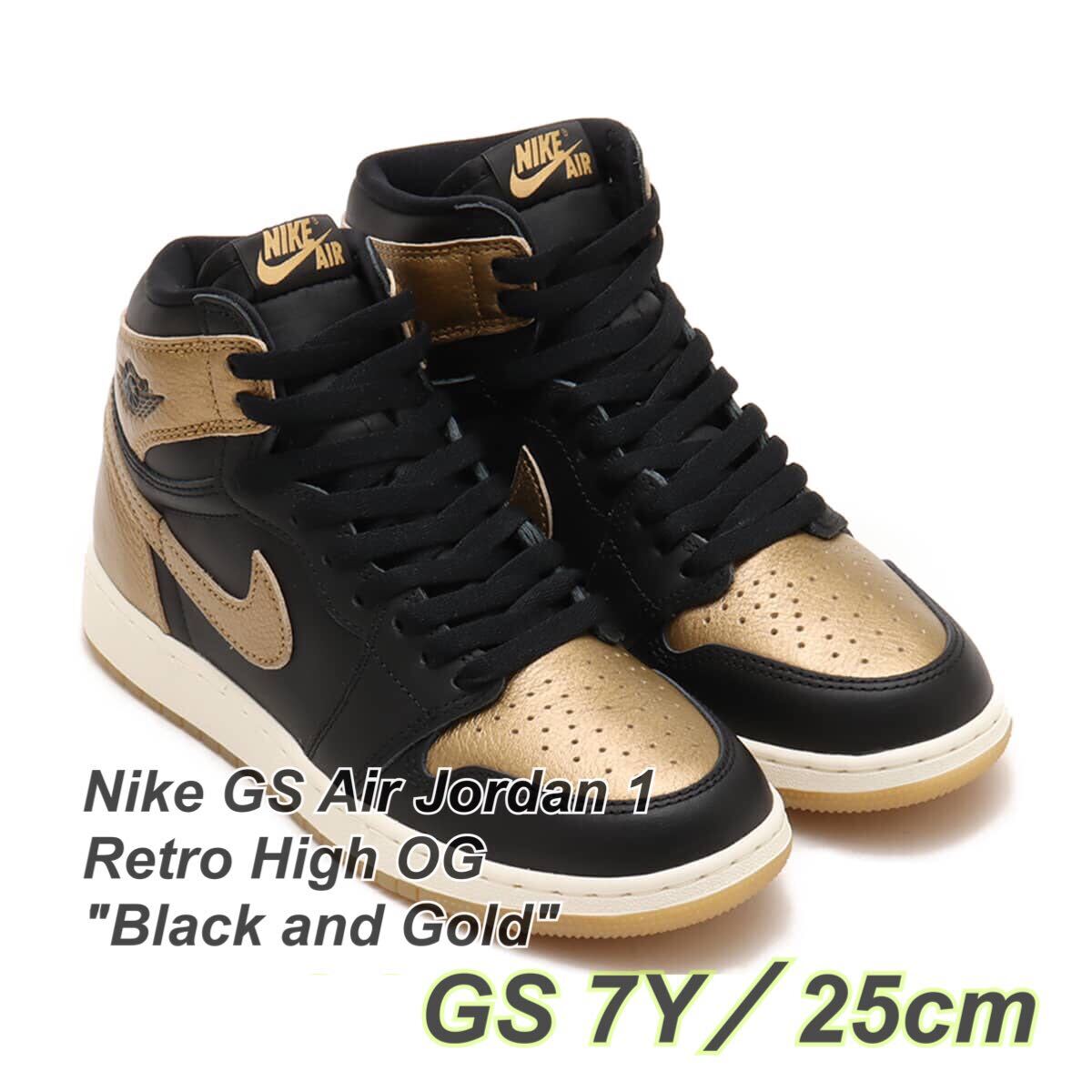 ナイキ GS エアジョーダン1 レトロ ハイ OG "ブラック アンド ゴールド"(FD1437-071)黒金25cm箱無し