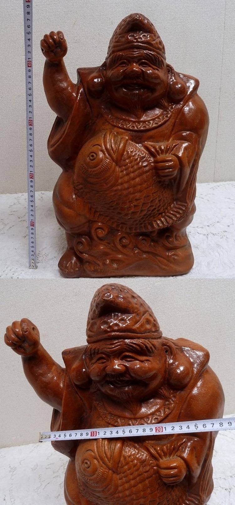 (☆BM)陶印あり 陶器製 七福神 恵比寿 置物 高さ48㎝/8.9kg 縁起物 日本 神様 アート オブジェ 備前焼/信楽焼 伝統工芸