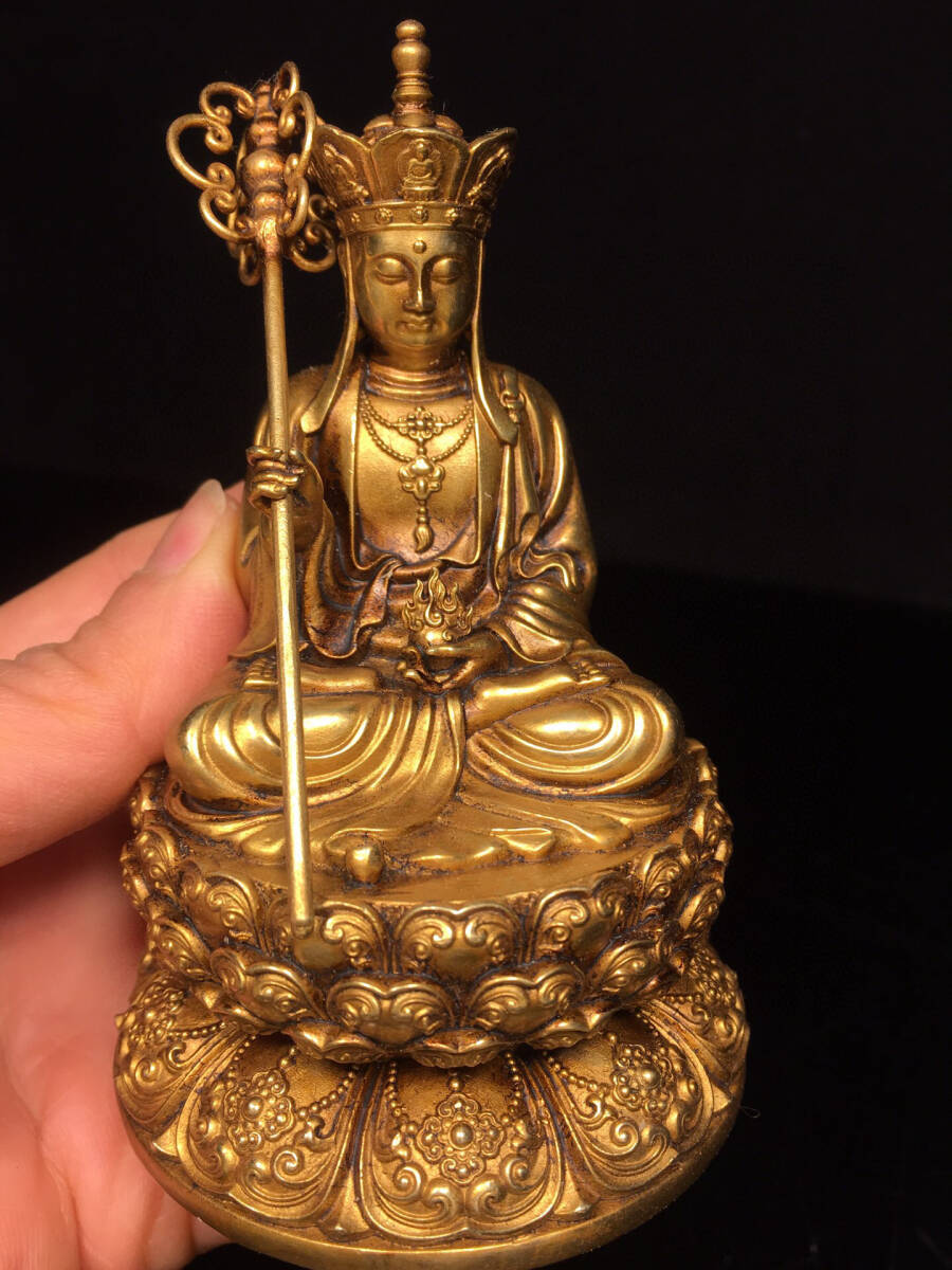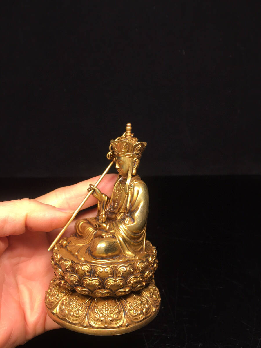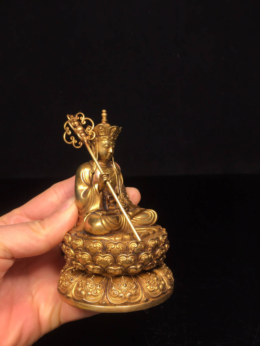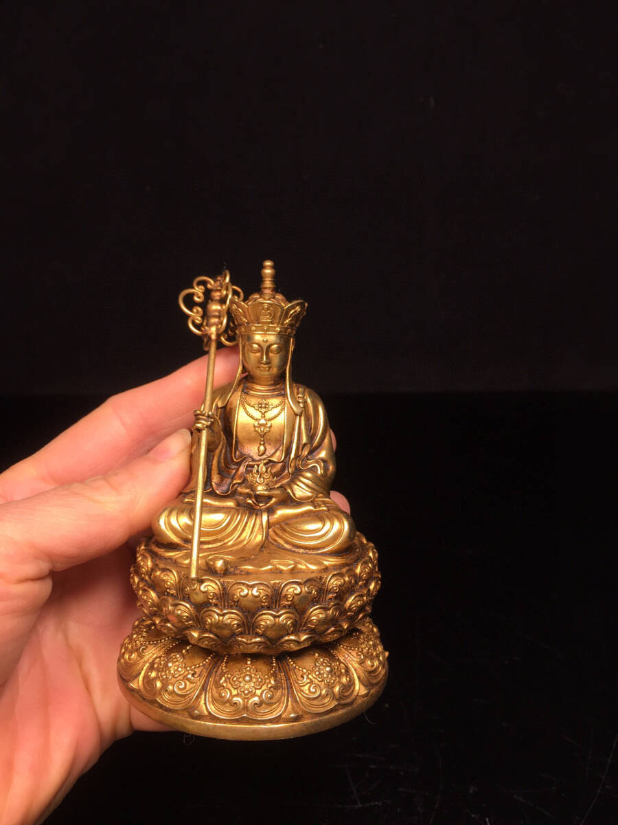 【仁】『銅製・塗金・地藏王菩薩像・仏教古美術・供養品』極細工 古賞物 中国古玩 古美術 古美味
