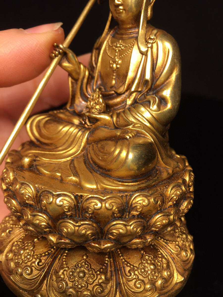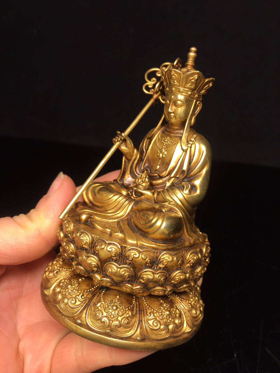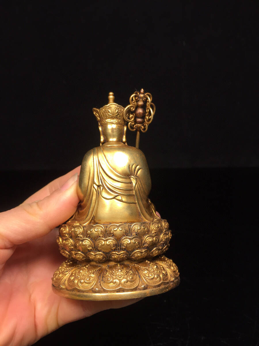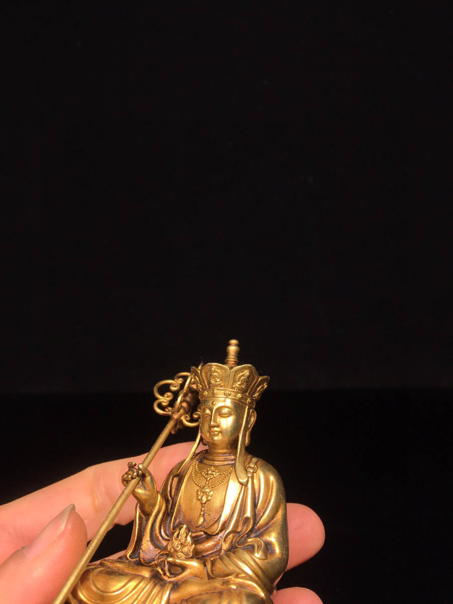 【仁】『銅製・塗金・地藏王菩薩像・仏教古美術・供養品』極細工 古賞物 中国古玩 古美術 古美味