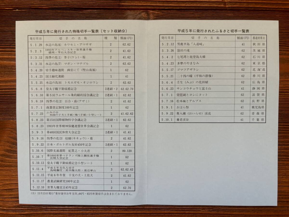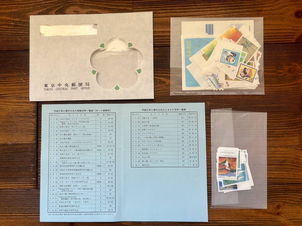 平成5年に発行された特殊切手、ふるさと切手のセット 東京中央郵便局
