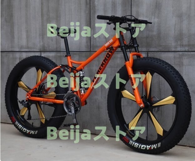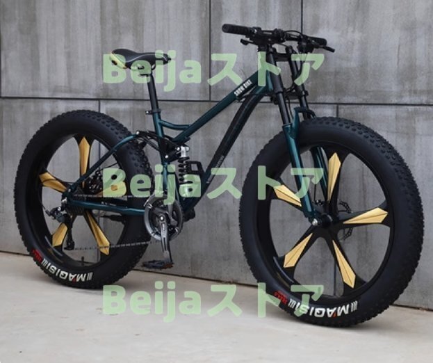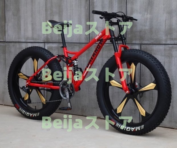 強くお勧め マウンテンバイク 26インチファットタイヤハードテイル 7速 デュアルサスペンションフレームとサスペンションフォーク F1547
