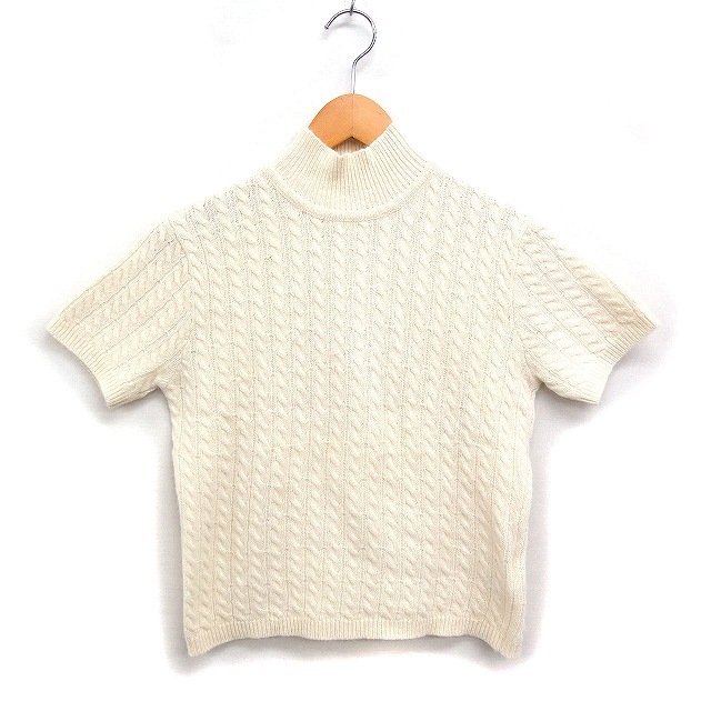 ジェイクルー J.CREW ケーブル編み 半袖 ニット セーター ハイネック ウール S アイボリー 白 /FT35 レディース
