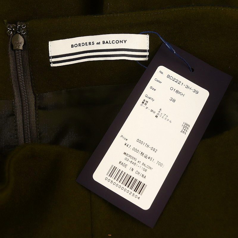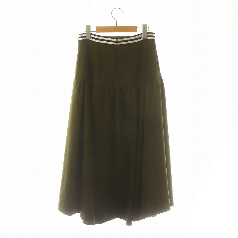 未使用品 ボーダーズアットバルコニー BORDERS at BALCONY フレアウールスカート FLARE WOOL SKIRT ロング丈 38 M 緑