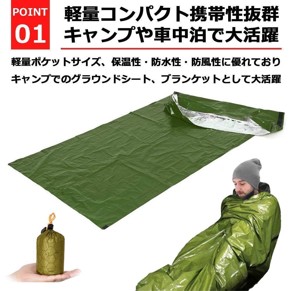 エマージェンシーシート サバイバルシート シュラフカバー 封筒型 シュラフ 寝袋 ブランケット アウトドア キャンプ 緊急時