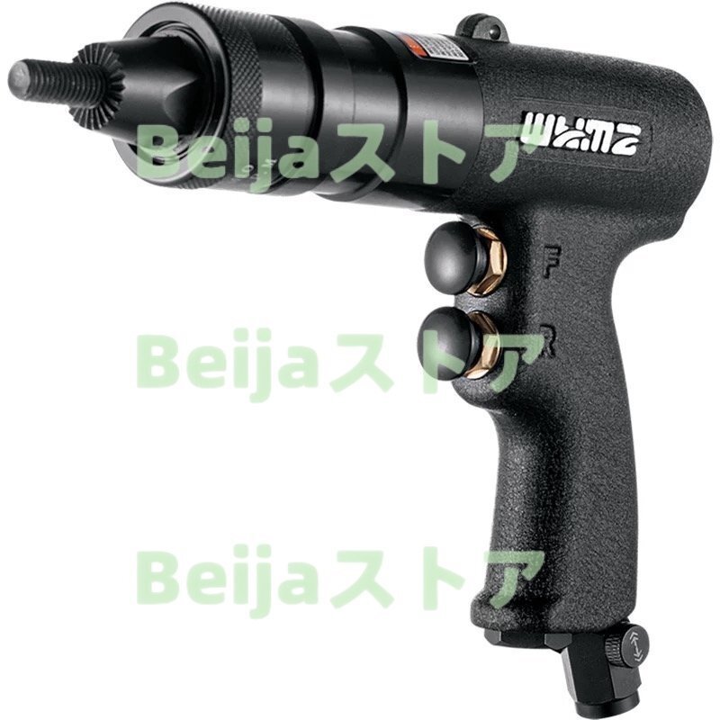 【回転速度】:400rpm 【材質】:良質の材質がノズルを作って、六角ソケットとギアベアリングは高い硬度の鋼材を採用して、合金ローターは優良な合金鋼で鍛造して高速運転でも効果を発揮することができ、硬度が高く、耐摩耗性、耐高温性に優れており、長時間良好な効果を維持でき、長寿命です。 【操作】:リベットナットは、設置時に潤滑が必要なく、リベットナットのサイズに応じて、引っ張り力を調整する、操作は非常に安全で便利です。 【排気弁】:360°回転排気バルブは、排気がスムーズに実行され、隣にある1/4気管接続部は防塵ネット構造で効果的に異物が体内に侵入するのを防ぎ、機器を効果的に保護します。 【正反転スイッチ】:Fギアは時計回り、Rギアは反時計回り、異なる場合に適しており使いやすいです。
