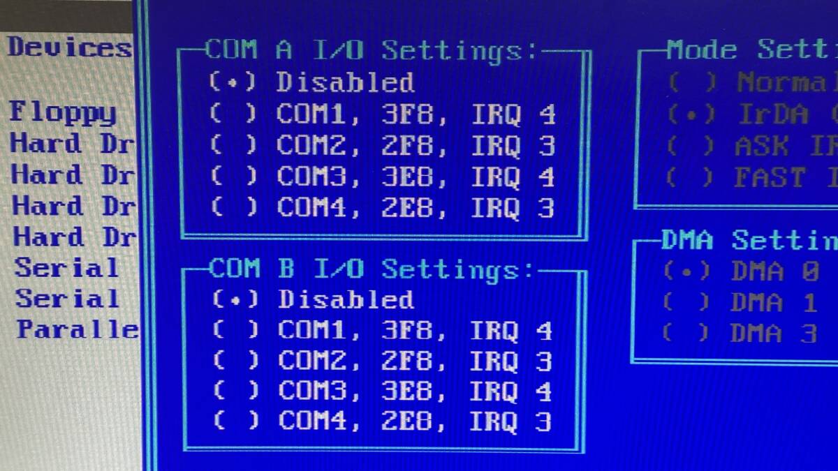 起動時に最後の写真のようにCOM AとBをDisabledにしないと途中で起動が止まります。