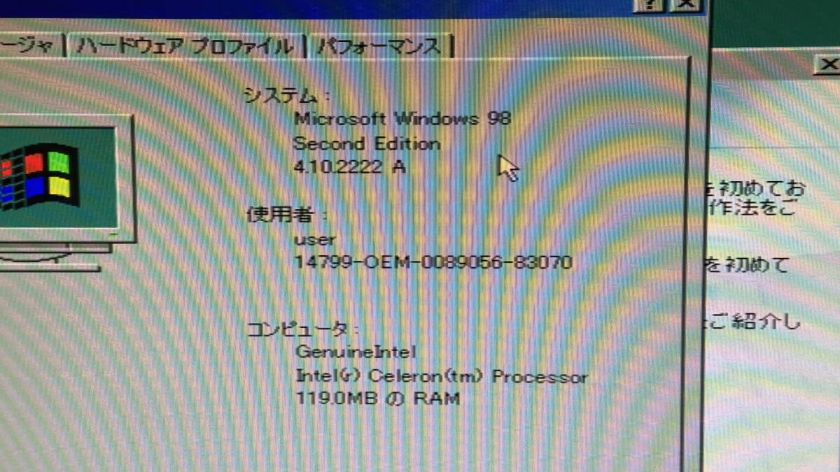 バックライトが点灯しませんので、外部モニタに繋げてWindows98のクリーンインストールを行いました。