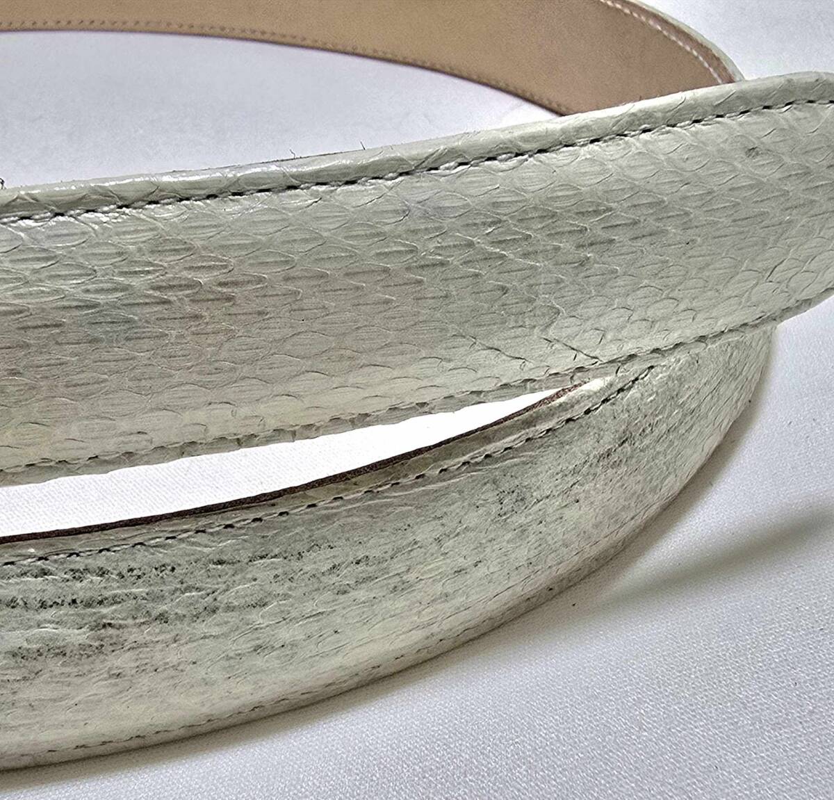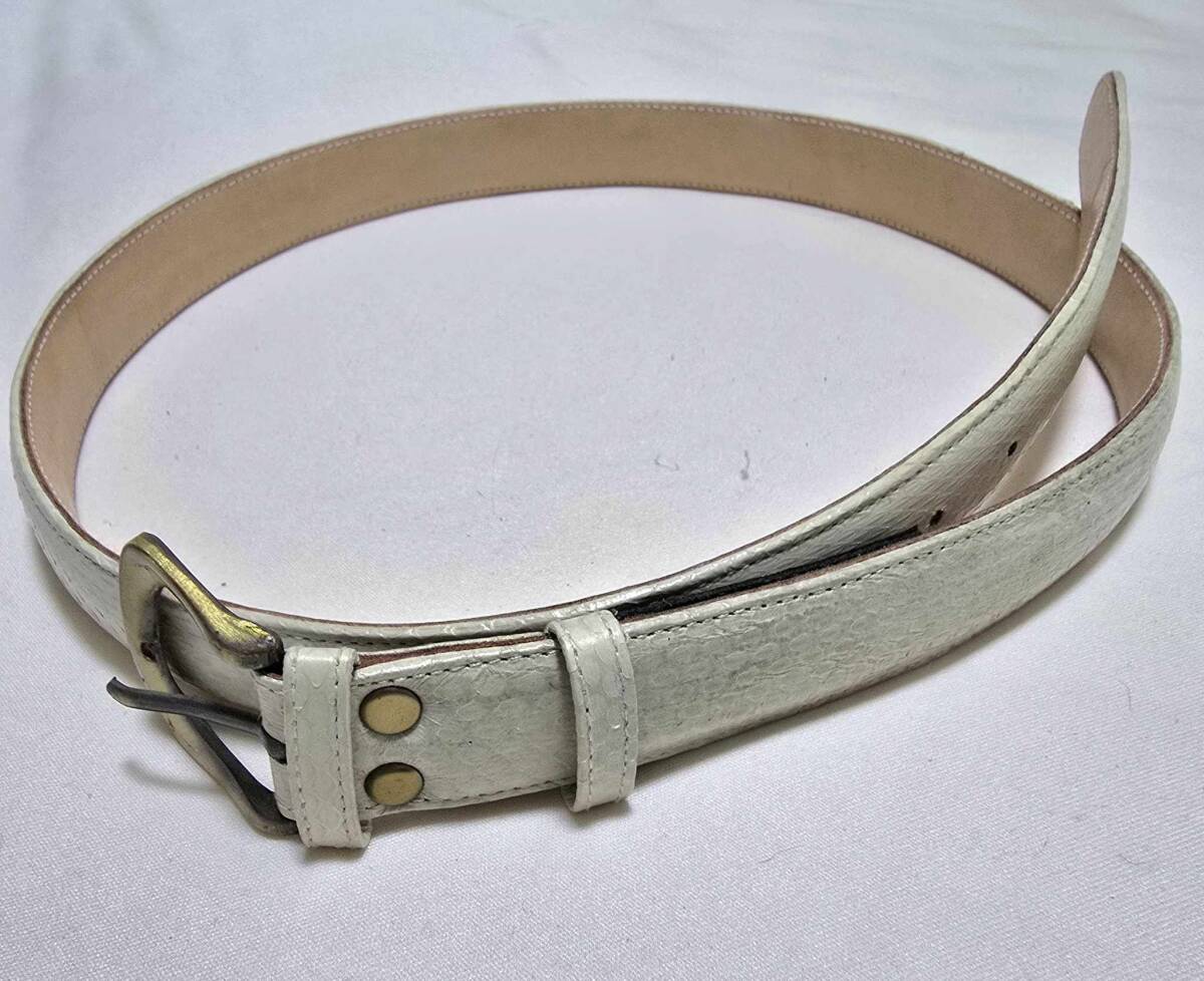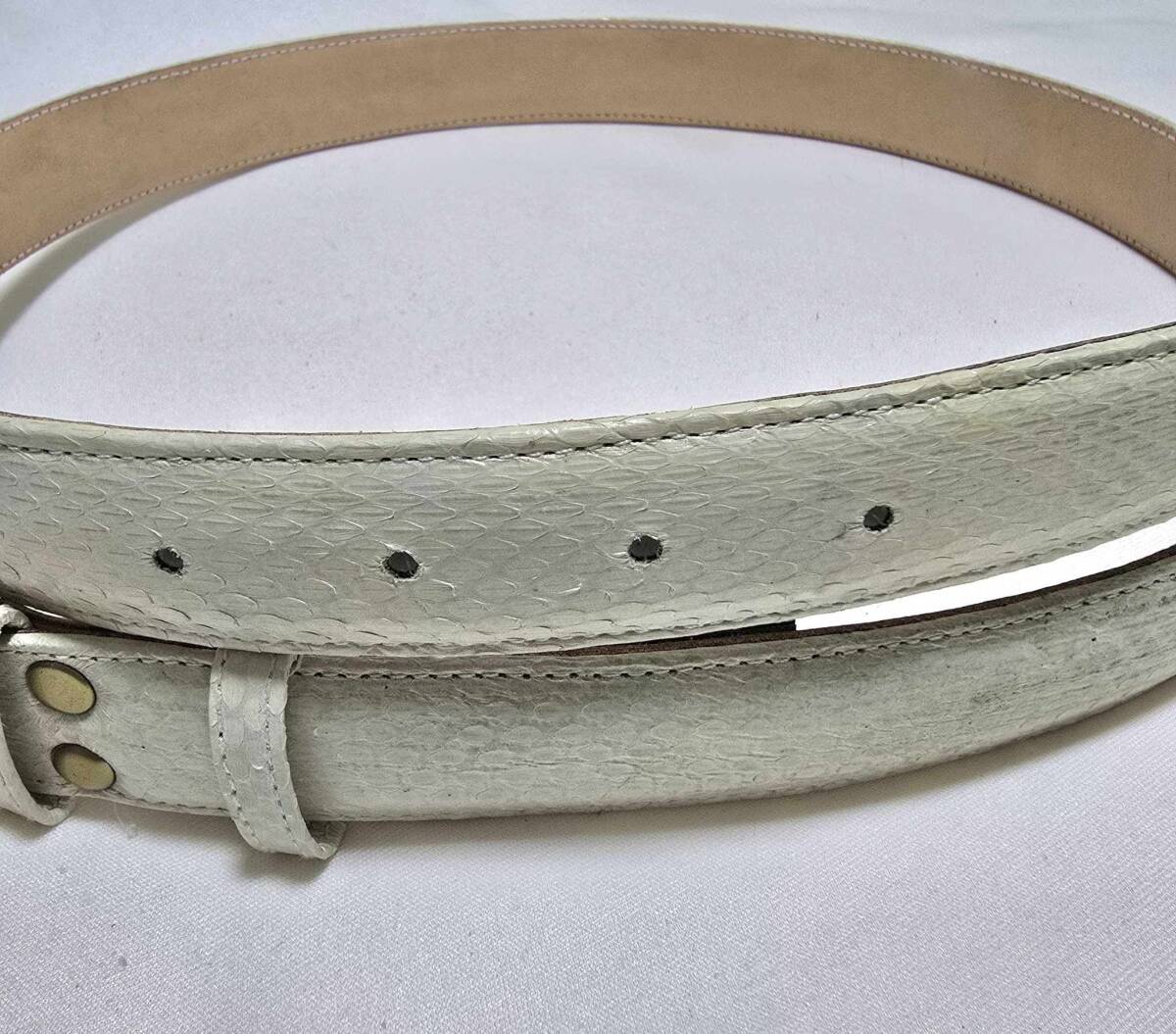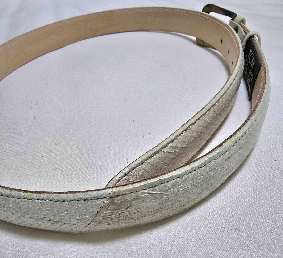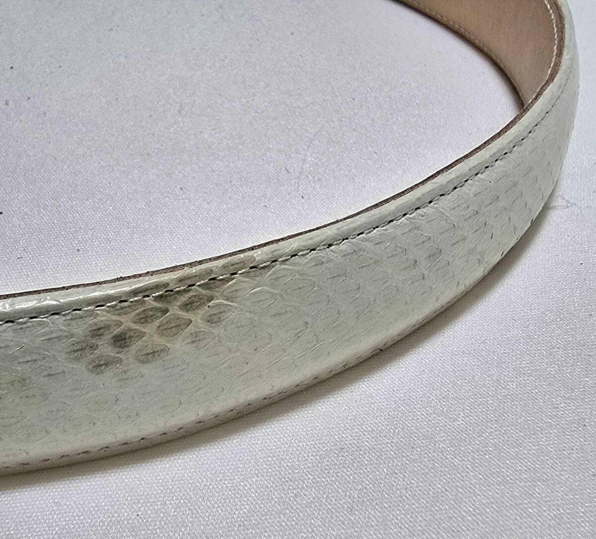 本革蛇/スネークレザー オリジナル ベルト 白ホワイトです。前回の巳年に海外で作成。作りも良く雰囲気有ります。風水 金運 幸運を呼ぶと言われる白蛇です。 幅3cm 長さ115cm 厚み最大中央部7ミリ 天然素材と一つ一つ職人の手作りの為、個々 多少の個体差が有ります。