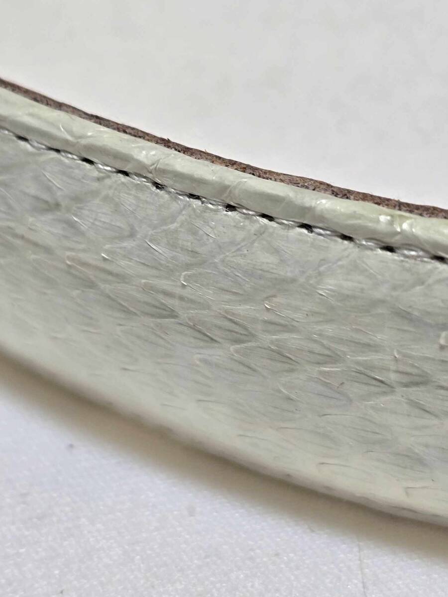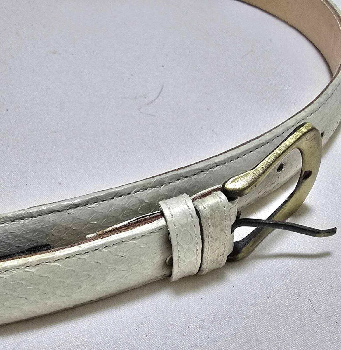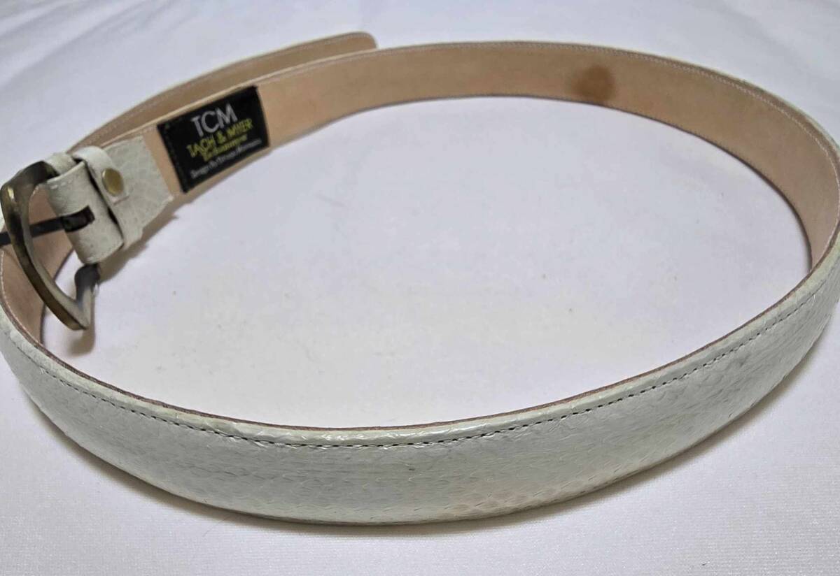 本革蛇/スネークレザー オリジナル ベルト 白ホワイトです。前回の巳年に海外で作成。作りも良く雰囲気有ります。風水 金運 幸運を呼ぶと言われる白蛇です。 幅3cm 長さ115cm 厚み最大中央部7ミリ 天然素材と一つ一つ職人の手作りの為、個々 多少の個体差が有ります。