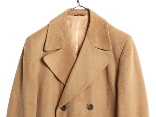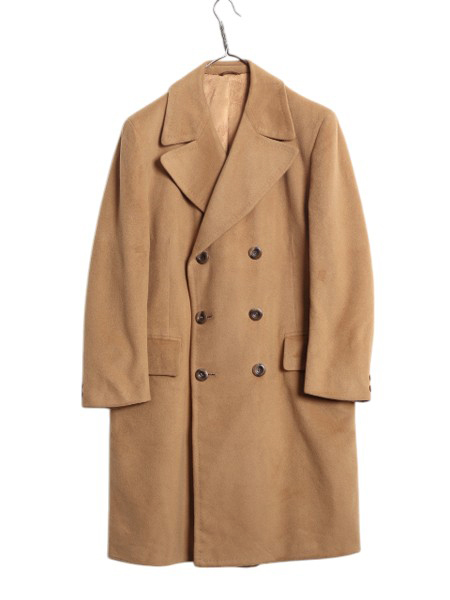 商品名 | 70s USA製 キャメル ヘア ダブルブレスト チェスター フィールド コート メンズ M / 古着 ヴィンテージ ロング トラッド ライナー付き 無地 |