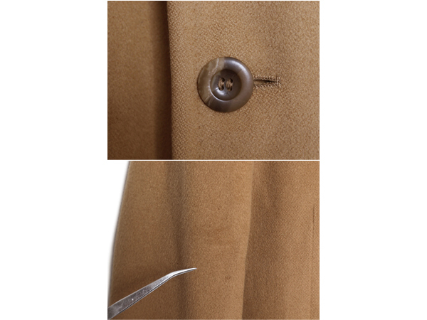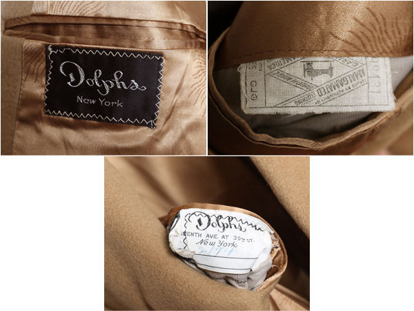 70年代のヴィンテージ Dolphs のダブルチェスターコートです。 ブランド詳細は不明、ネームタグから ニューヨークに店を構えていたテーラーによる ビスポーク の物と思われる商品です。 MADE IN USA (アメリカ製 ユニオンチケット付き) 素材表記はありませんが、生地の質感から キャメルヘアー混と思われます。 キャメルヘアーは、シルクに似た光沢で非常に肌触りがよく 軽く、保温性、吸湿性、発散性に優れた高級素材 しっかりとした目の詰まった厚手のヘビーウェイトですが 見た目よりも軽く、ストレスなく着て頂ける 保温性の高い上質な素材がふんだんに使用されています。 内側は、着脱が容易で着心地抜群のサテンライナー ライナーには、高級感のある総柄プリント ラペルにハンドステッチの装飾が入った凝ったデザイン 6ボタンフロントのダブルブレスト 両サイドにフラップポケット付き オーバーコートの中で最もドレッシーといえる チェスターフィールドコート なかなか見かけないダブルチェスター 流行に左右されないオーセンティックなデザイン 美しいシルエットは言うまでもありません 街着としてはもちろん ビジネス 通勤にも使用できる、着回しのきく 長く愛用して頂ける商品です。 |