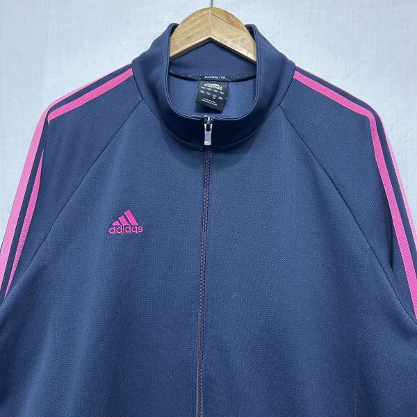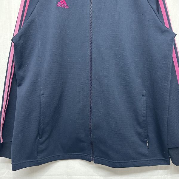 〇adidas アディダス ロング スリーブ 長袖 フル ジップ アップ ジャケット スポーツ トレーニング ランニング ウェア XO 紺 ネイビー